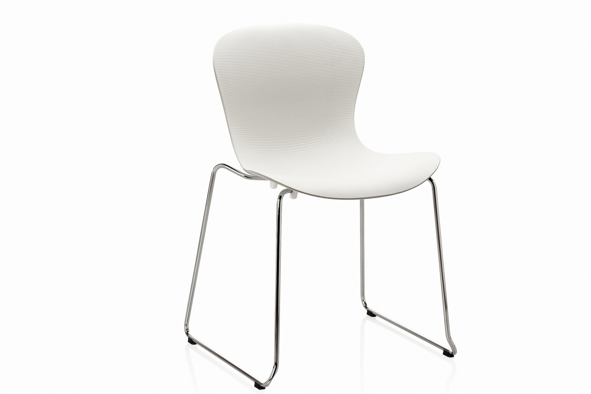De stoelen zijn leverbaar in de kleuren: wit, blauw, grijs en donkergrijs
