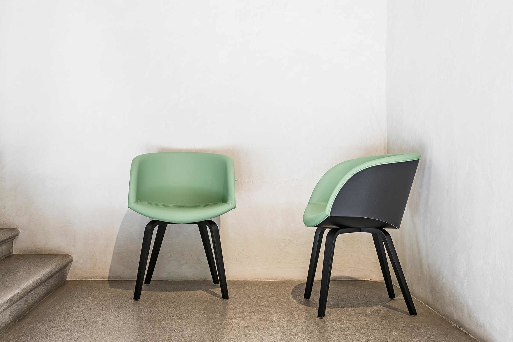 De Danny-collectie deelt de ronde vormen, het comfort en het zacht design net als Sonny stoel van Midj. Danny is echter verrijkt met een achterkant van de zitting van geperst hout, die doet denken aan de Scandinavische stijl.