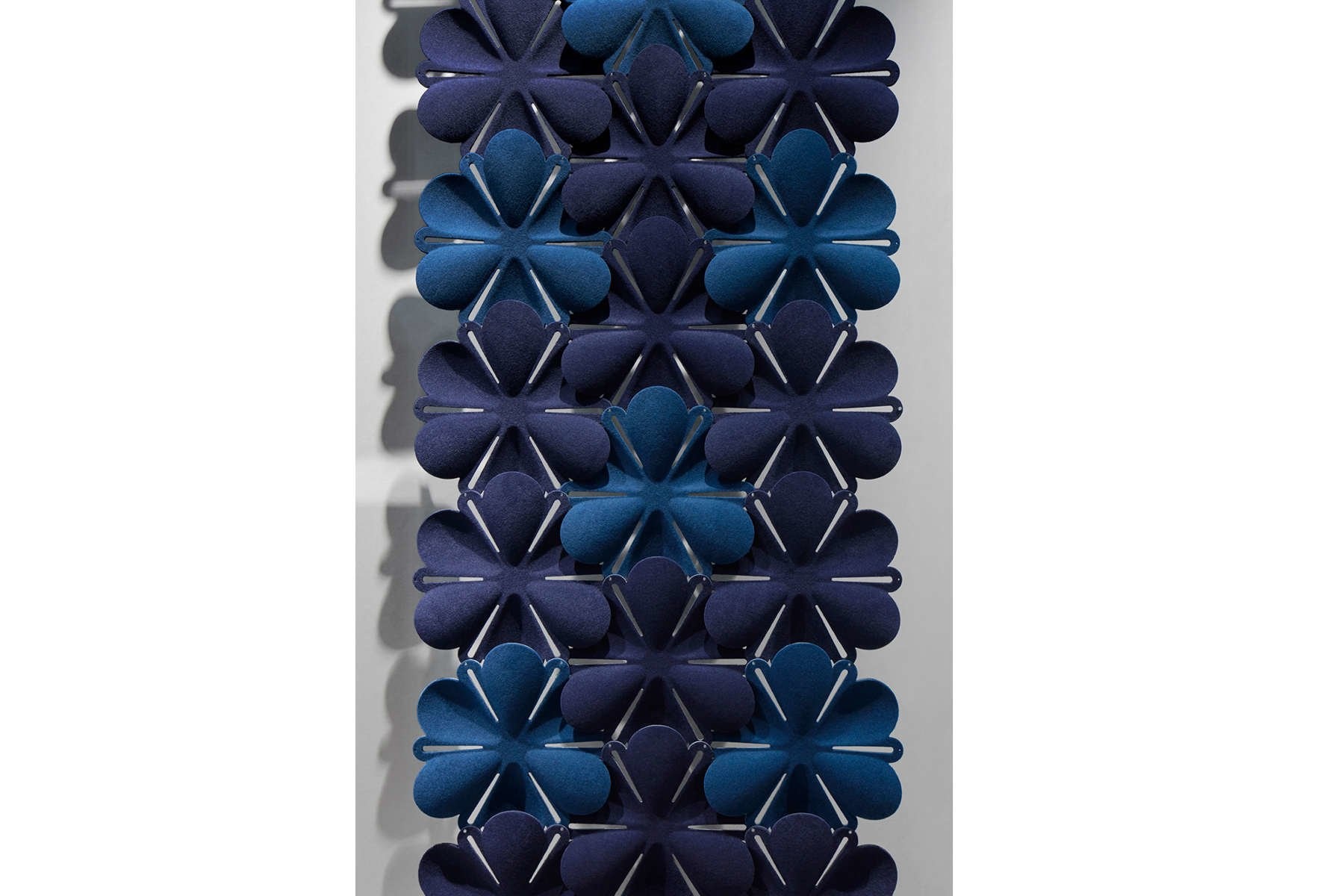 De Abstracta Airbloom is van voorgevormd vilt en is verkrijgbaar in 30 kleuren. Hierdoor zijn talloze verschillende creaties te maken. De panelen zijn eenvoudig aan elkaar vast te maken door kleine clips. Hierdoor creëert u voor iedere ruimte een uniek geheel. De Abstracta Airbloom zorgt niet alleen voor een reductie van geluid, het zorgt er tevens voor een visueel aantrekkelijke omgeving.