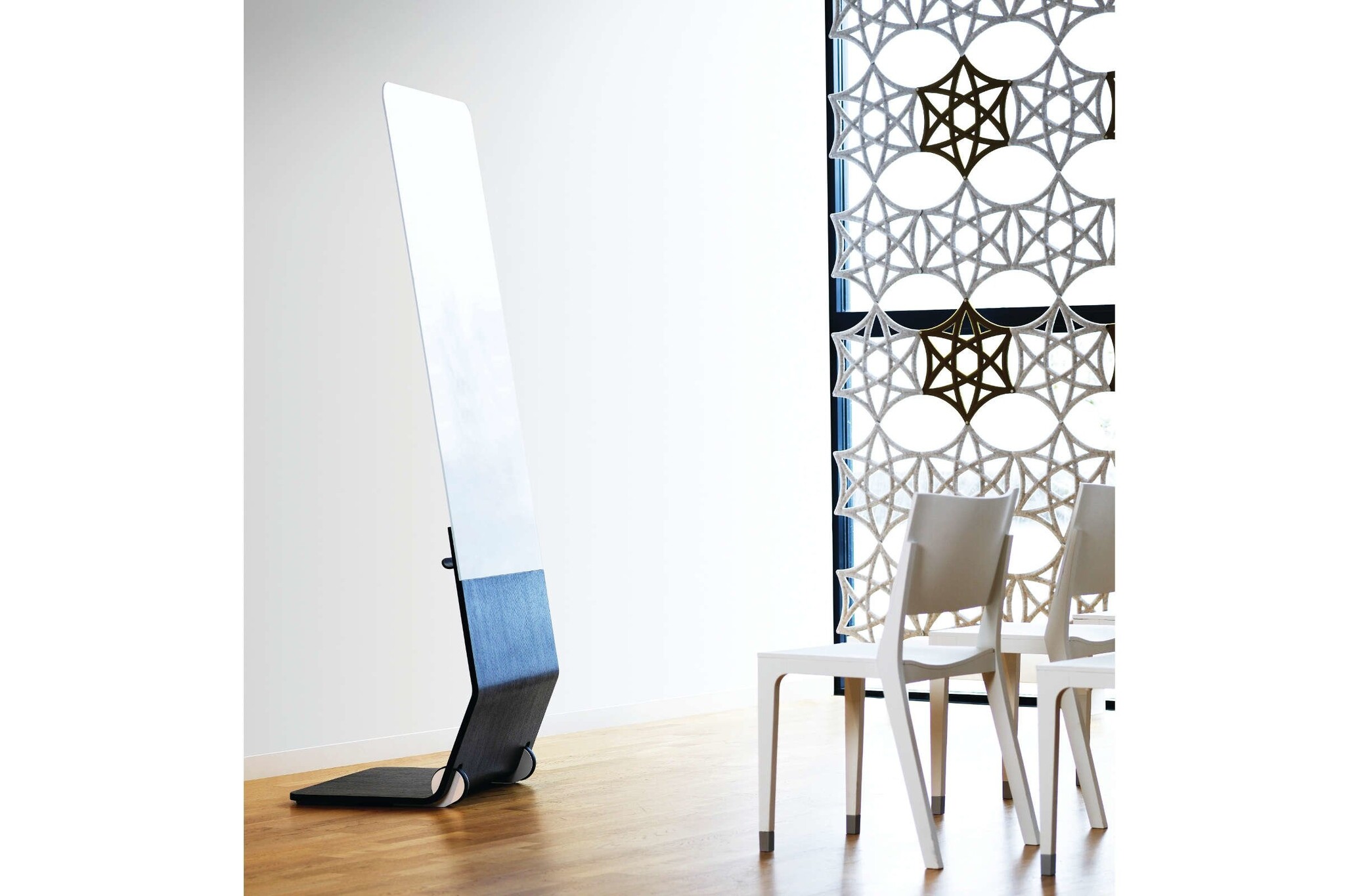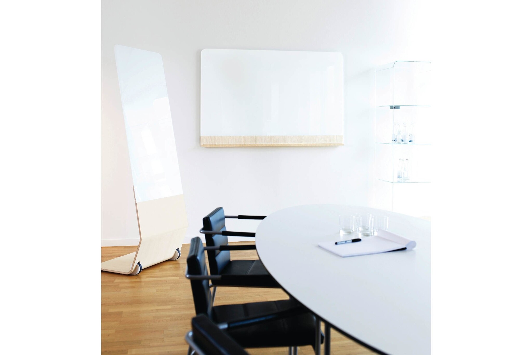 Abstracta Sense is een elegante productreeks met een zachte expressie, ontworpen voor moderne conferentie- en opleidingsruimtes. Ze zijn gemaakt uit gebogen glas en gevormd hout. Het gamma omvat wandschrijfborden en mobiele schrijfborden. Het frame is uit essen fineer en het glas is zwart, optisch wit of helder glas.