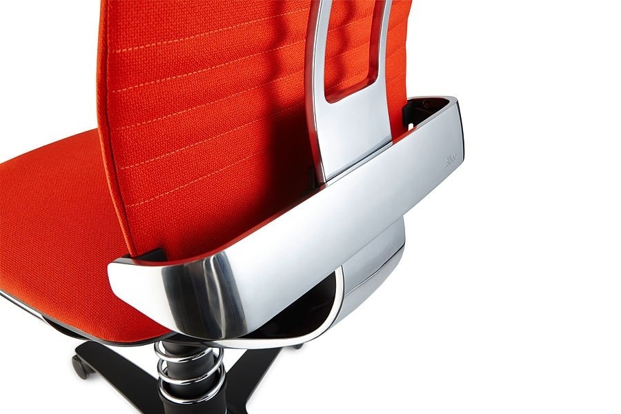 De zitting- en rugleuning van de bureaustoel is te bekleden in: Polyester Trevira CS (Step, Gabriel), Wolmix (Capture of Select, Gabriel), Microvezel (Comfort, Gabriel) of in het onderhoudsvriendelijke leer (Atlantic, Heller-Leder).