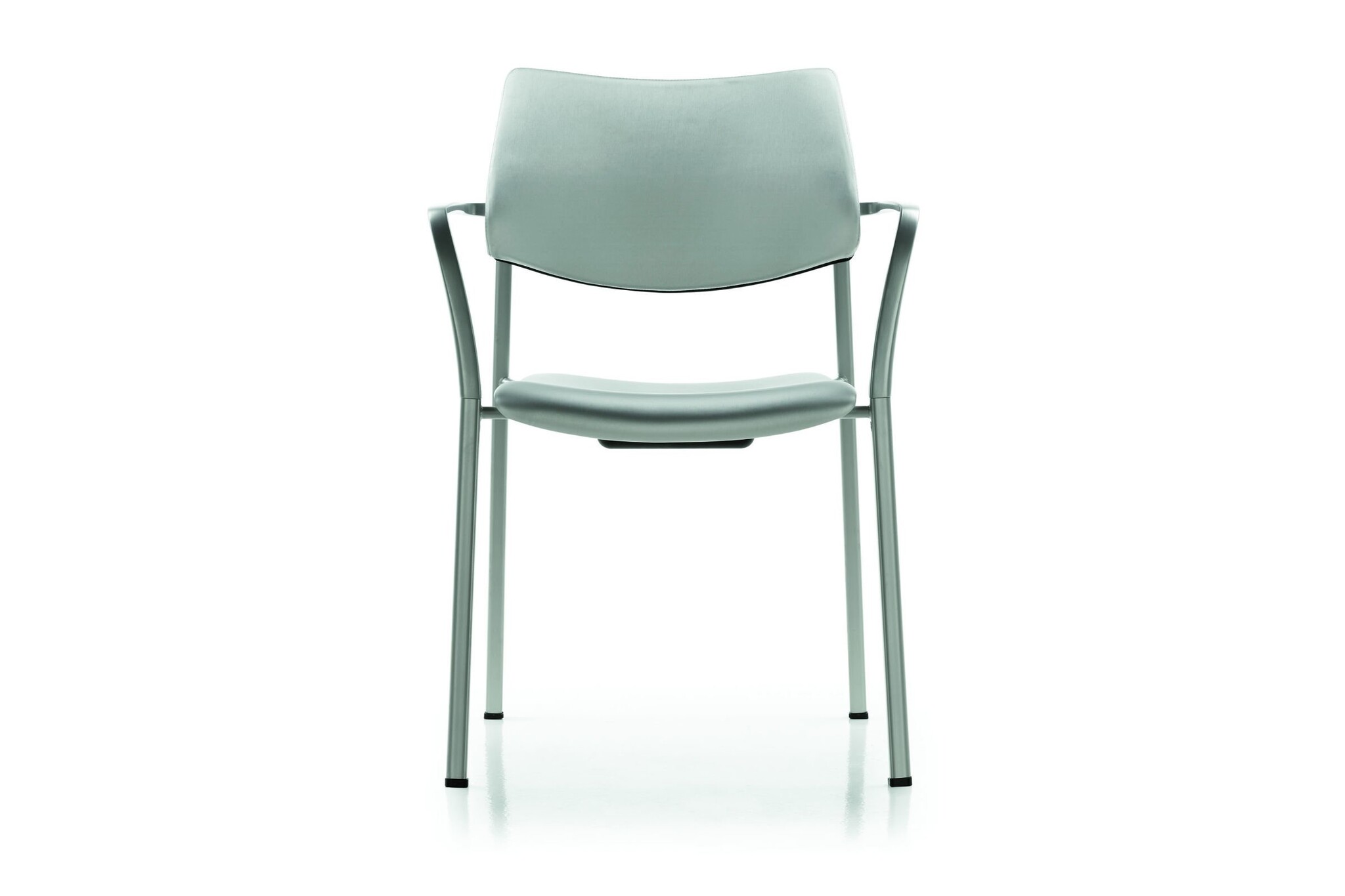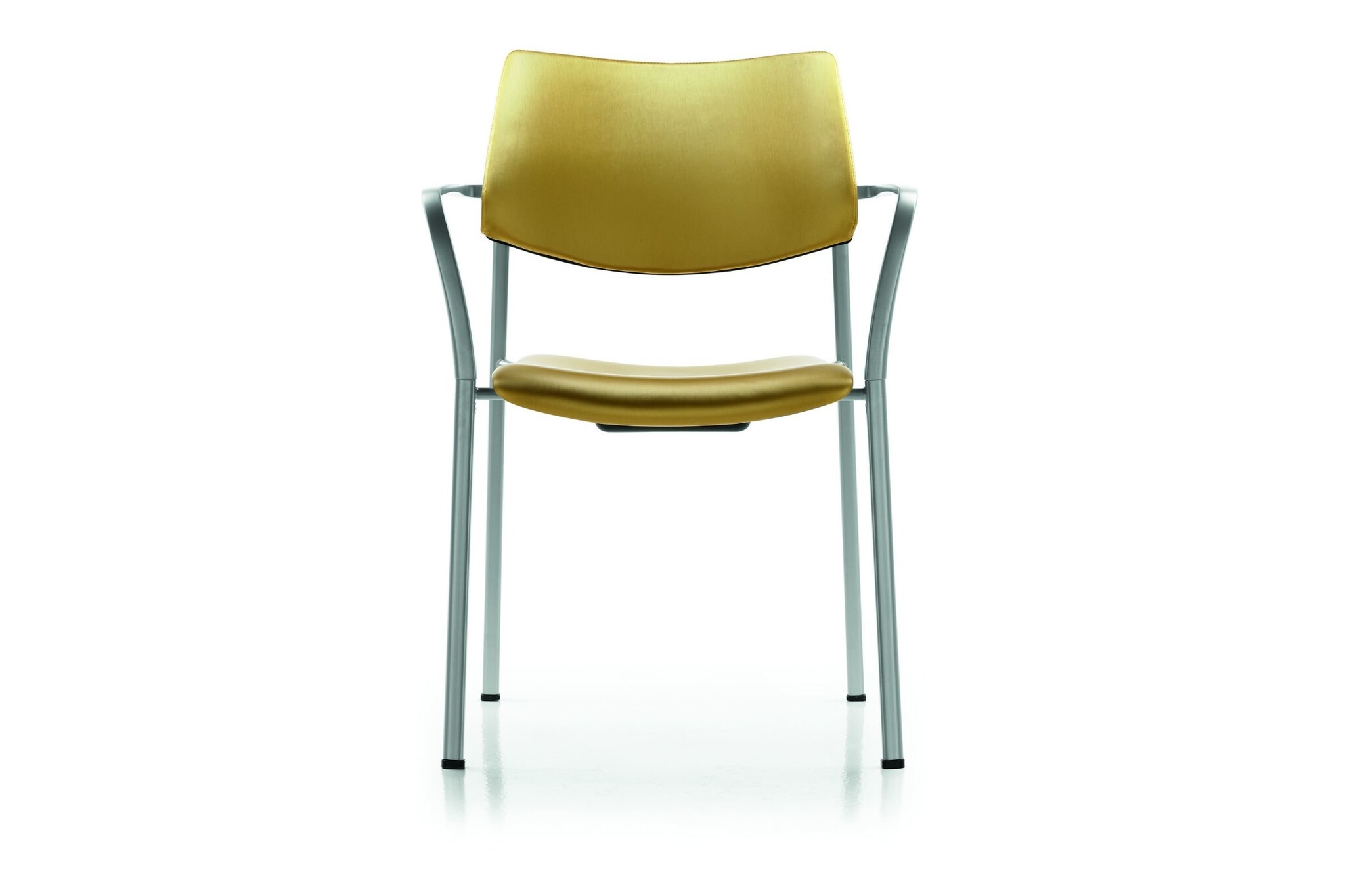 Stapelbare stoel met of zonder armleuningen. Het frame is gemaakt van gepoedercoat staal of verchroomd. Zitting en rug zijn gegoten van gefineerd (multiplex). De armleuningen zijn gemaakt van polyamide of gepoedercoated aluminium of gepolijst.