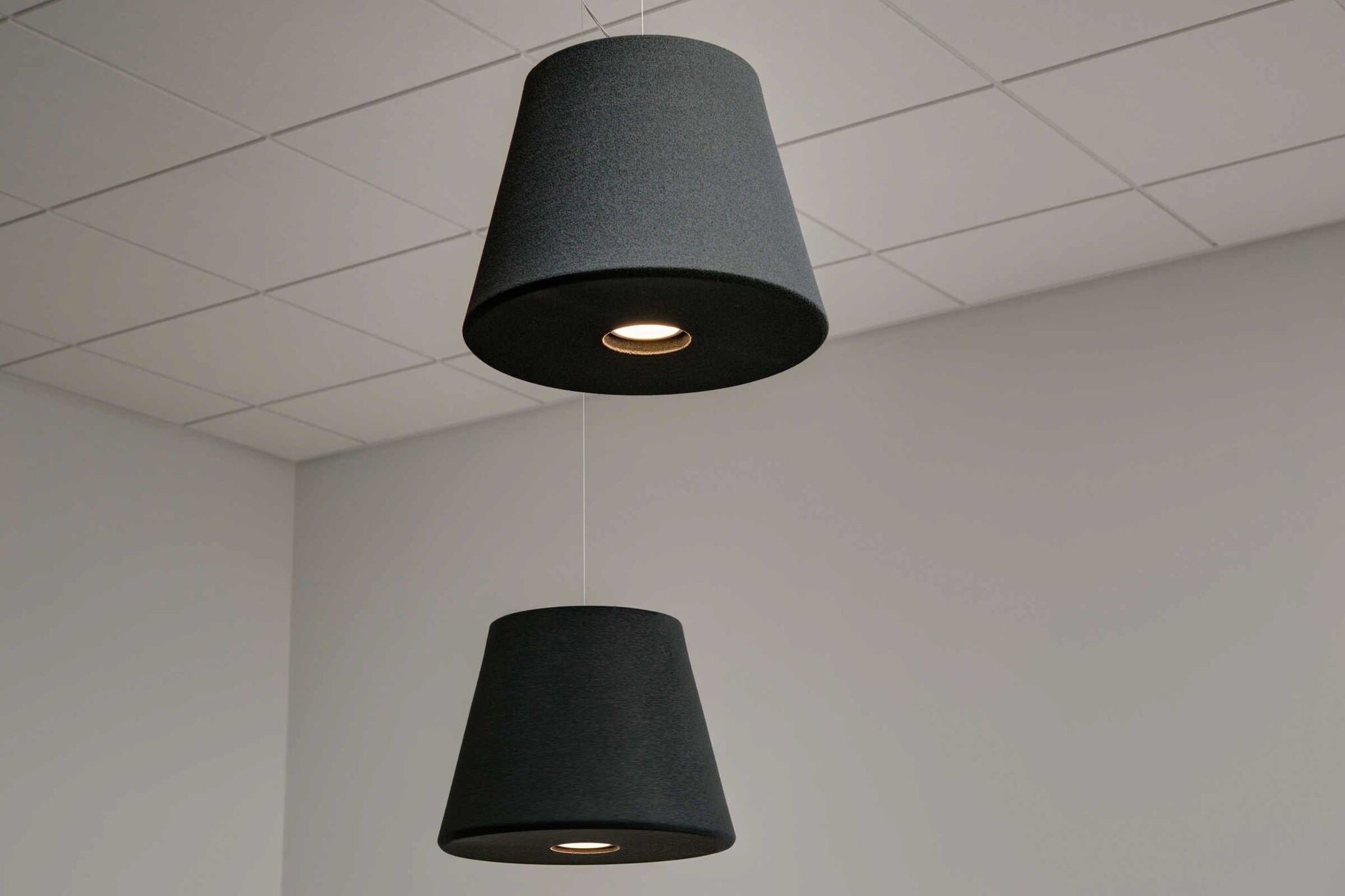 De Akomo Cup is akoestische verlichting. Deze akoestische pendel geeft LED downlight (schijnt naar beneden) en is ideaal toepasbaar in ruimtes waarbij naast verlichting ook een akoestische oplossing gewenst is om geluidsoverlast te beperken. Je kunt denken aan het bedrijfsrestaurant of andere horecagelegenheden, maar ook aan vergaderruimtes, lounges of lobby’s. De Akomo Cup heeft een geluiddempende werking en is leverbaar in maar liefst 12 verschillende kleuren en 2 verschillende hoogtematen (300 en 500 mm). Zo past er altijd wel een Akomo Cup in uw kantoorinrichting.