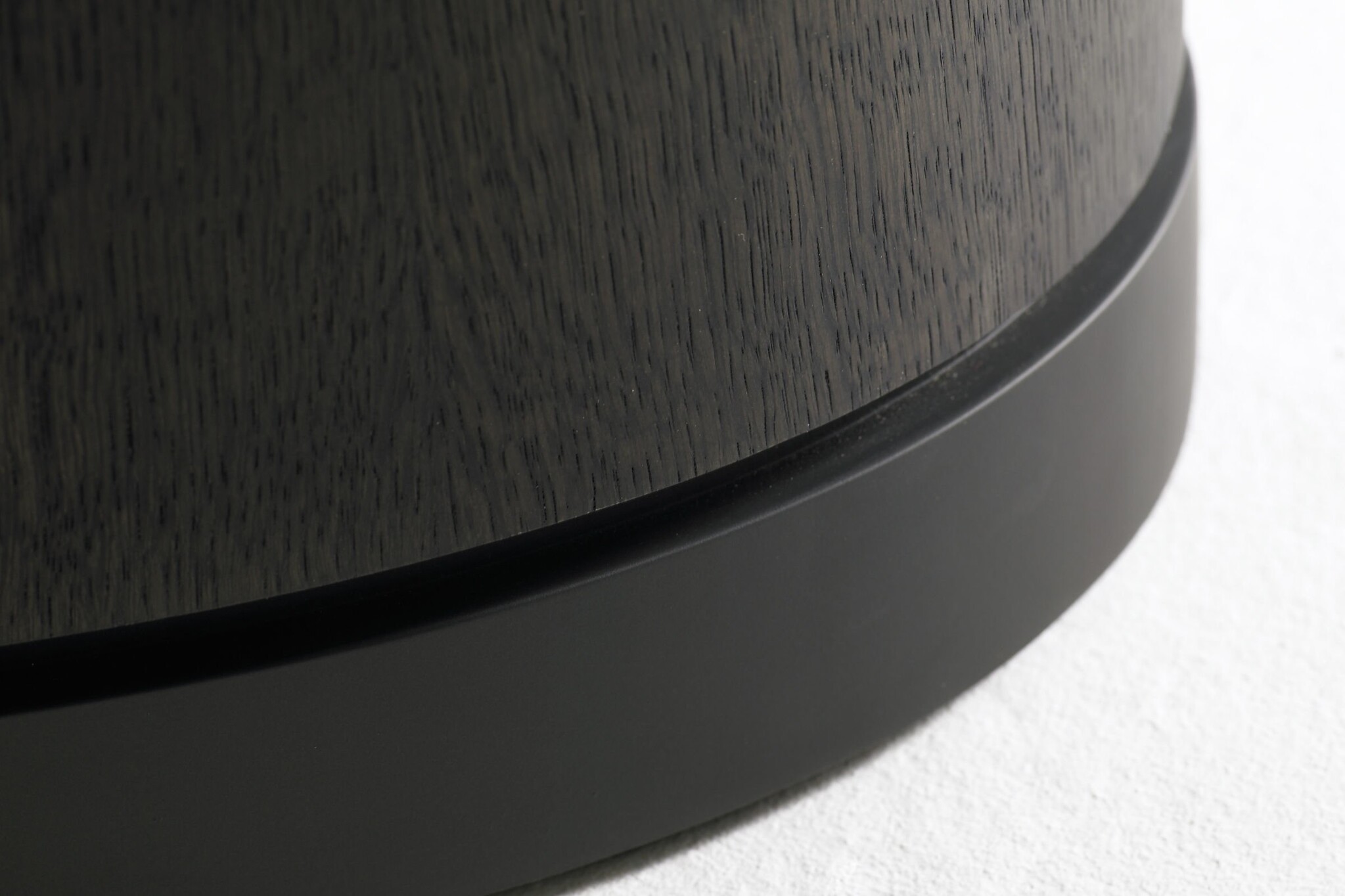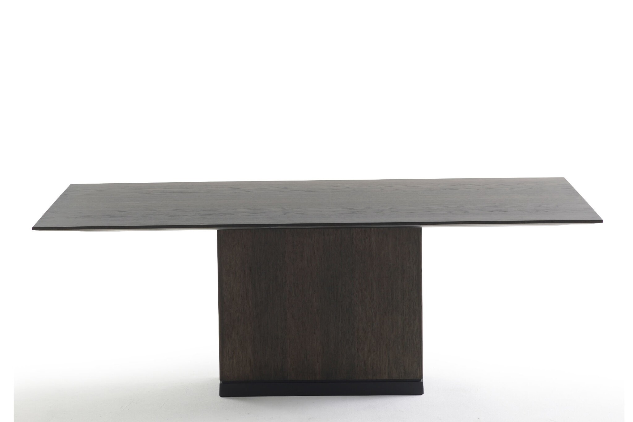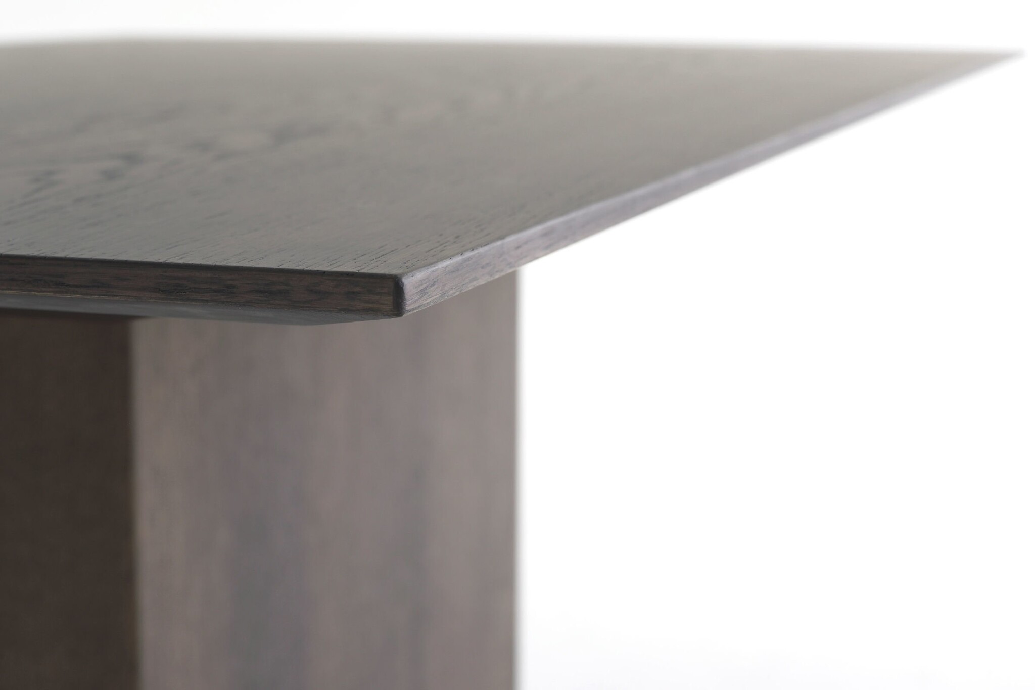 Materialen Arco Spazio tafels: Blad: eiken of noten (massief, fineer), uitschuifblad: eiken of noten (fineer, duramas), kolom: eiken of noten (fineer), kleurlak op mdf en voet: kleurlak op beton.