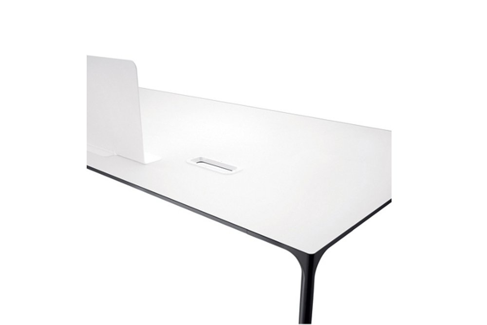 Arper Nuur Office heeft een rechthoekig blad voorzien van oogjes, geschikt om te worden voorzien van bureau-accessoires. Tops zijn verkrijgbaar in MDF laminaat of fineer, met gepolijst of gelakt aluminium frame. Hoogte 74 cm. Nieuwe reeks accessoires om Nuur tabel aan te passen aan gebruik op kantoor zijn op aanvraag beschikbaar met een toeslag: schermen, kabeldoorvoeren en houders, pakkingring covers, frontpaneel, PC houders en lades.