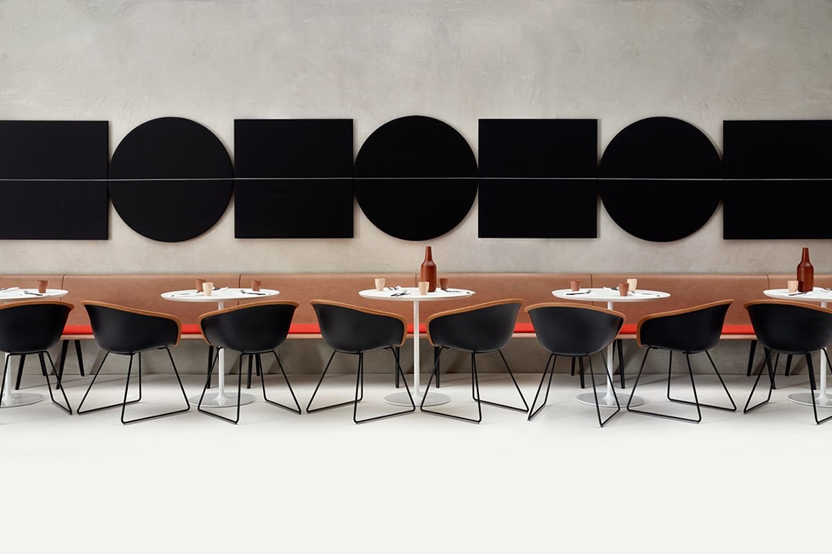 De panelen zijn te stofferen in diverse stoffencollecties van bijvoorbeeld Kvadrat, Vescom en de eigen Arper collectie.