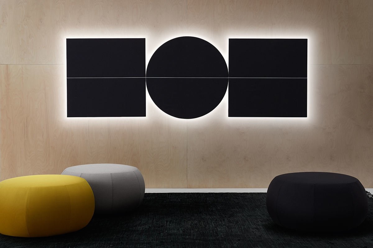 De Arper Parentesit is een verzameling van modulaire decoratieve wandpanelen met akoestische eigenschappen en kunnen ook voor verlichting en audio zorgen.De panelen zijn verkrijgbaar in drie vormen: cirkel, vierkant of ovaal. Deze vormen zijn eindeloos met elkaar te combineren en eenvoudig te plaatsen aan de wand.