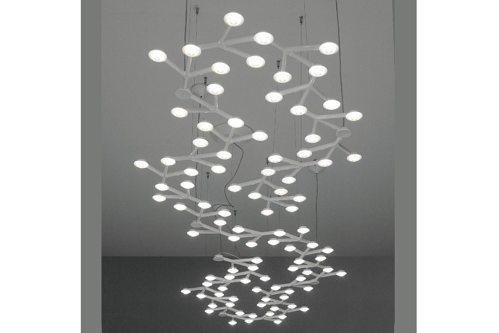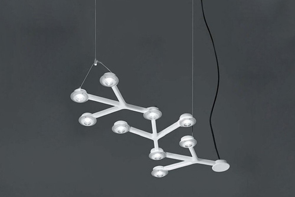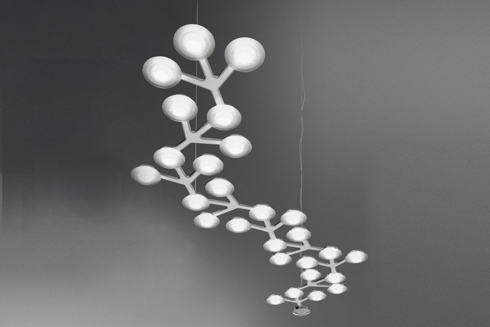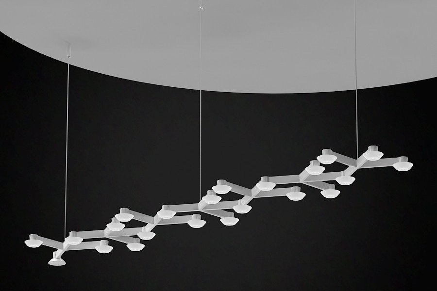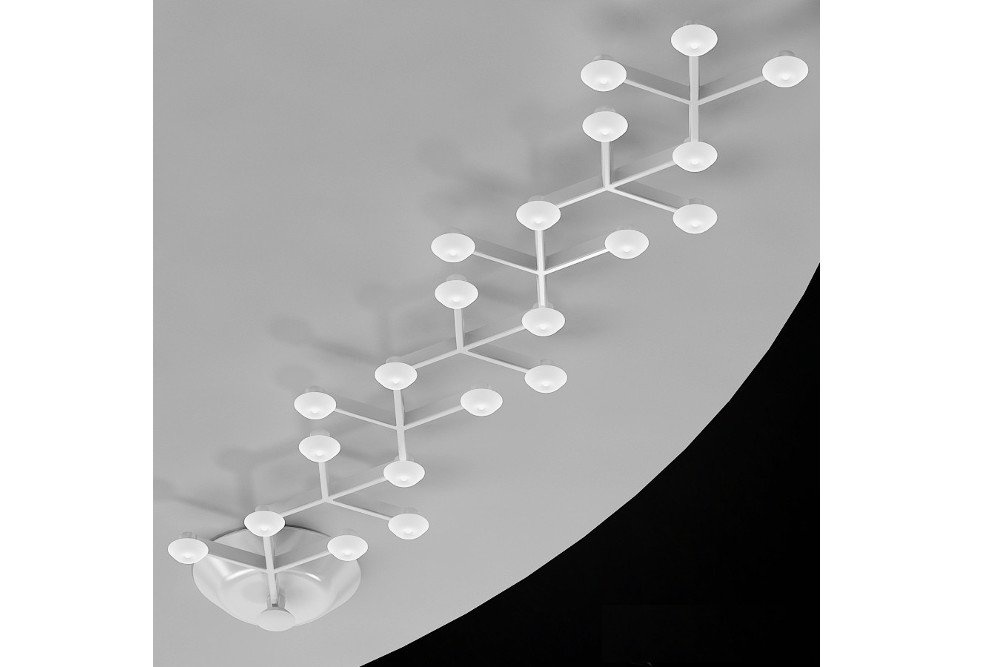 Een hanglamp of plafondlamp met unieke vormen in wit gelakt aluminium. Led Net Line is voorzien van 18 led verlichtingen van 41 Watt per stuk. Deze lamp is tevens te verkrijgen in een andere variant: Led Net Circle.