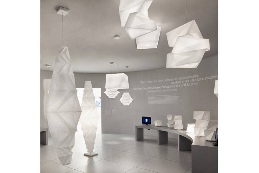 Deze lamp behoort tot de IN-EI collectie van Issey Miyake en Reality Lab. Minomushi is leverbaar als hanglamp en vloerlamp. Deze lamp is geïnspireerd op origami papier en dit is duidelijk terug te zien in de vormen van de lamp.