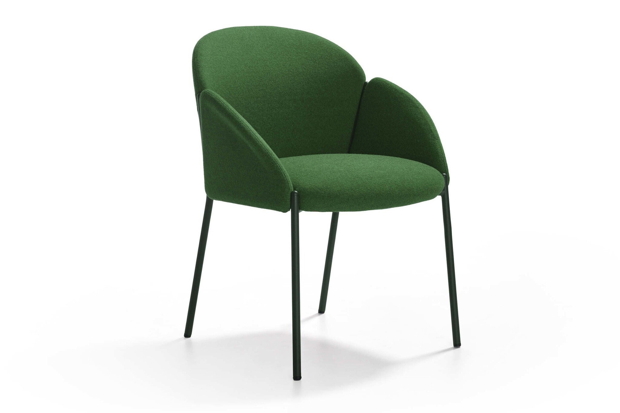 Artifort Andrea is een zachte, ronde, moderne eet- of vergaderstoel, evenals te gebruiken als een loungestoel. Ontworpen door de Zweedse architect Claesson Koivisto Rune. Gepresenteerd in Milaan op de Salone del Mobile meubelbeurs 2018. De vorm is als een bloeiende bloem en vanwege de zachte geometrie en veelzijdigheid in beschikbare stoffen en beenkleuren, past de stoel in elk interieur.