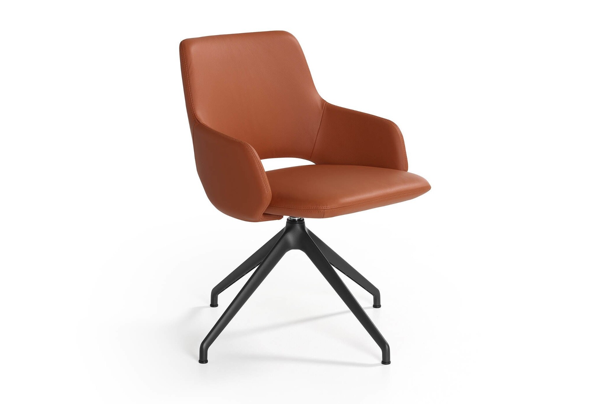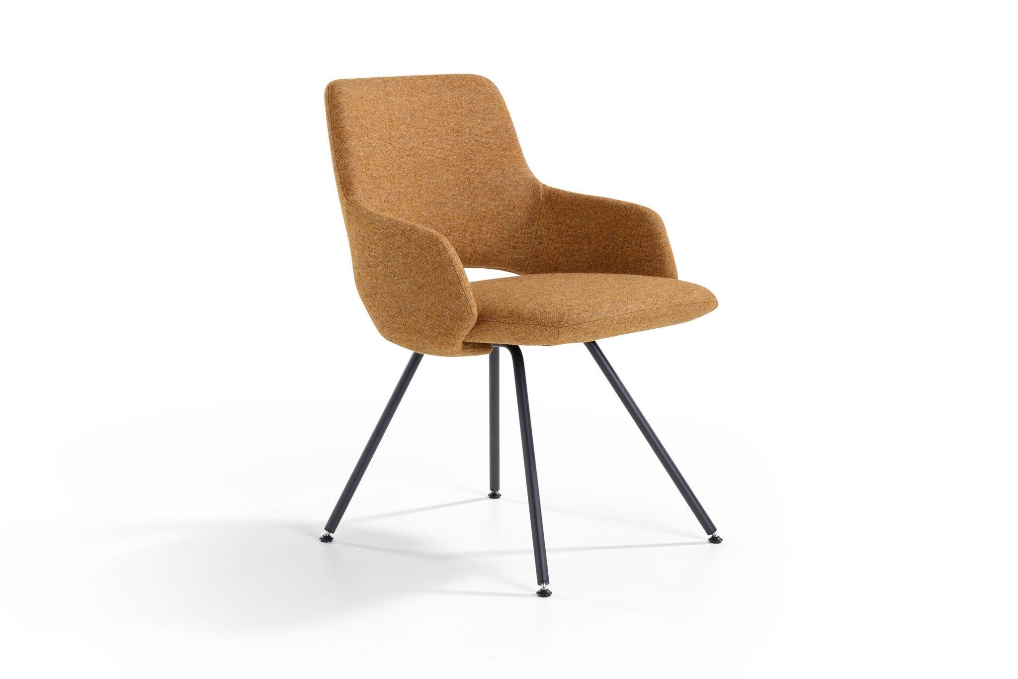 4-teens stoel: onderstel is in een standaard poedercoatkleur. Of tegen meerprijs onderstel aluminium gepolijst. Draaibaar zonder retourmechanisme. Voorzien van zwart kunststof vloerdoppen.