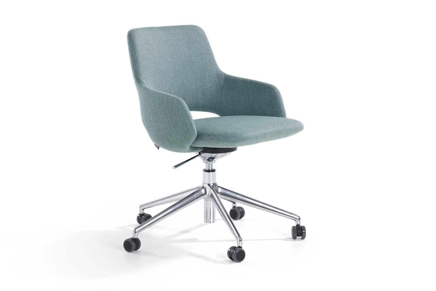 5-teens stoel: onderstel is in poederocoat of tegen meerprijs in gepolijst aluminium. Indien het onderstel gepolijst is, dan wordt het bedieningsmechaniek onder de zit ook altijd in gepolijst aluminium uitgevoerd. Indien het onderstel gepoedercoat is, dan wordt het bedieningsmechaniek onder de zit altijd in zwart uitgevoerd. De hoogteverstelling is altijd in chroom.