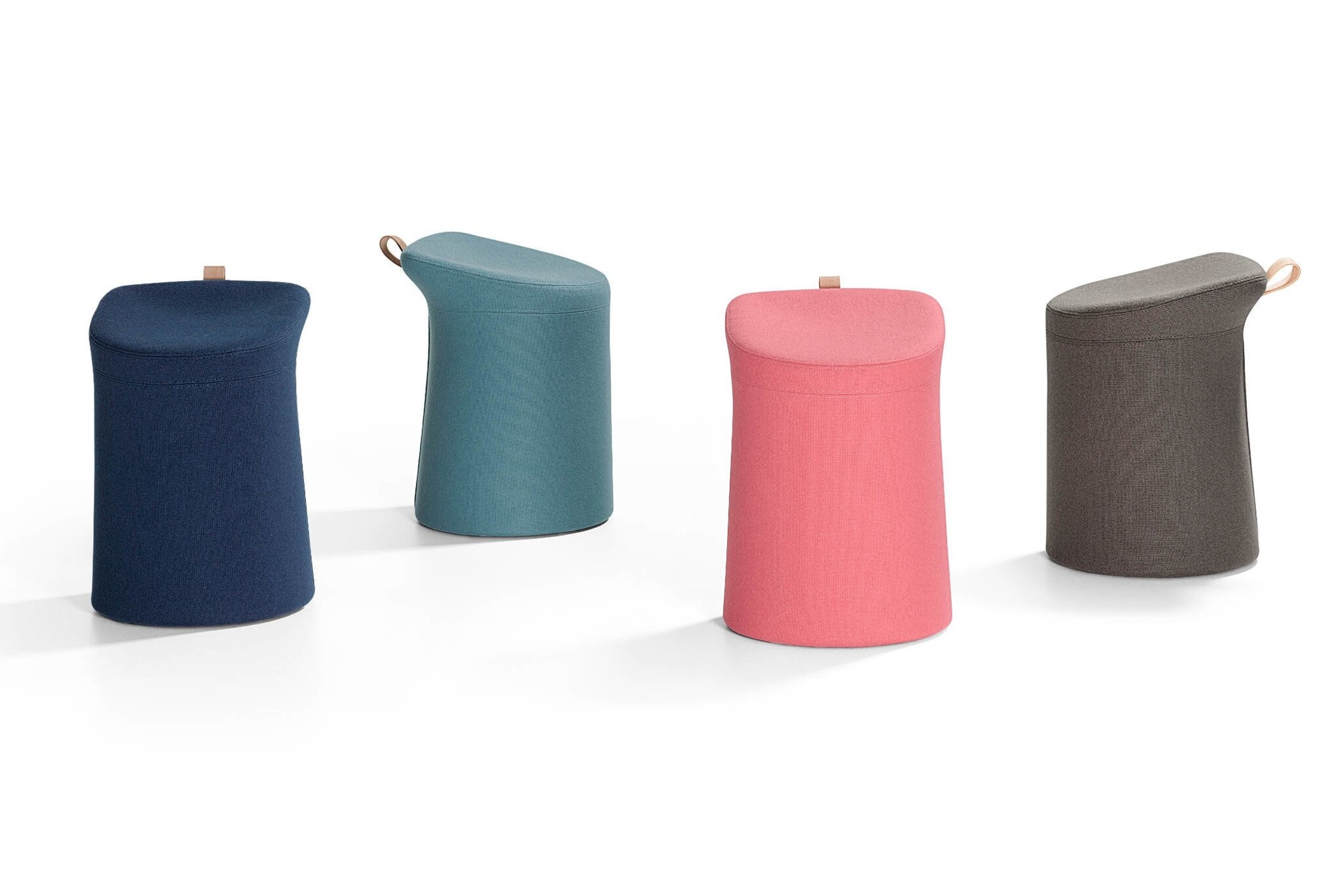 Het poefje is standaard voorzien van wit kunststof vloerdoppen. Een optie is om vloerdoppen met een metalen glijvlak of vloerdoppen met vilt te leveren. De handgreep van de Lilla 2_0 is leverbaar in zwart of naturel leer.