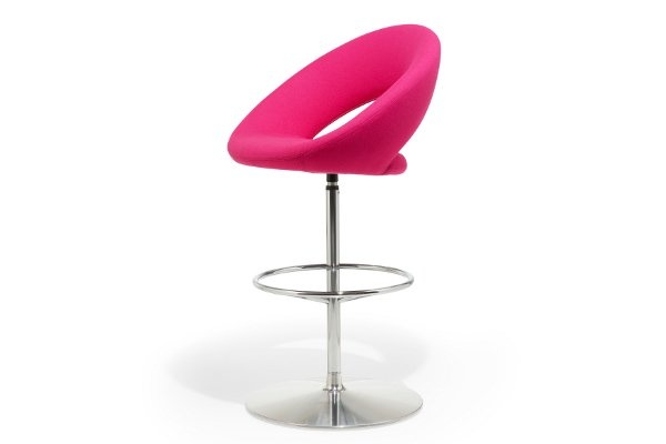 De Nina stoel kan ook worden uitgevoerd met een stervoetonderstel, dit onderstel is ook uitgevoerd in gepolijst aluminium en is in hoogte verstelbaar.