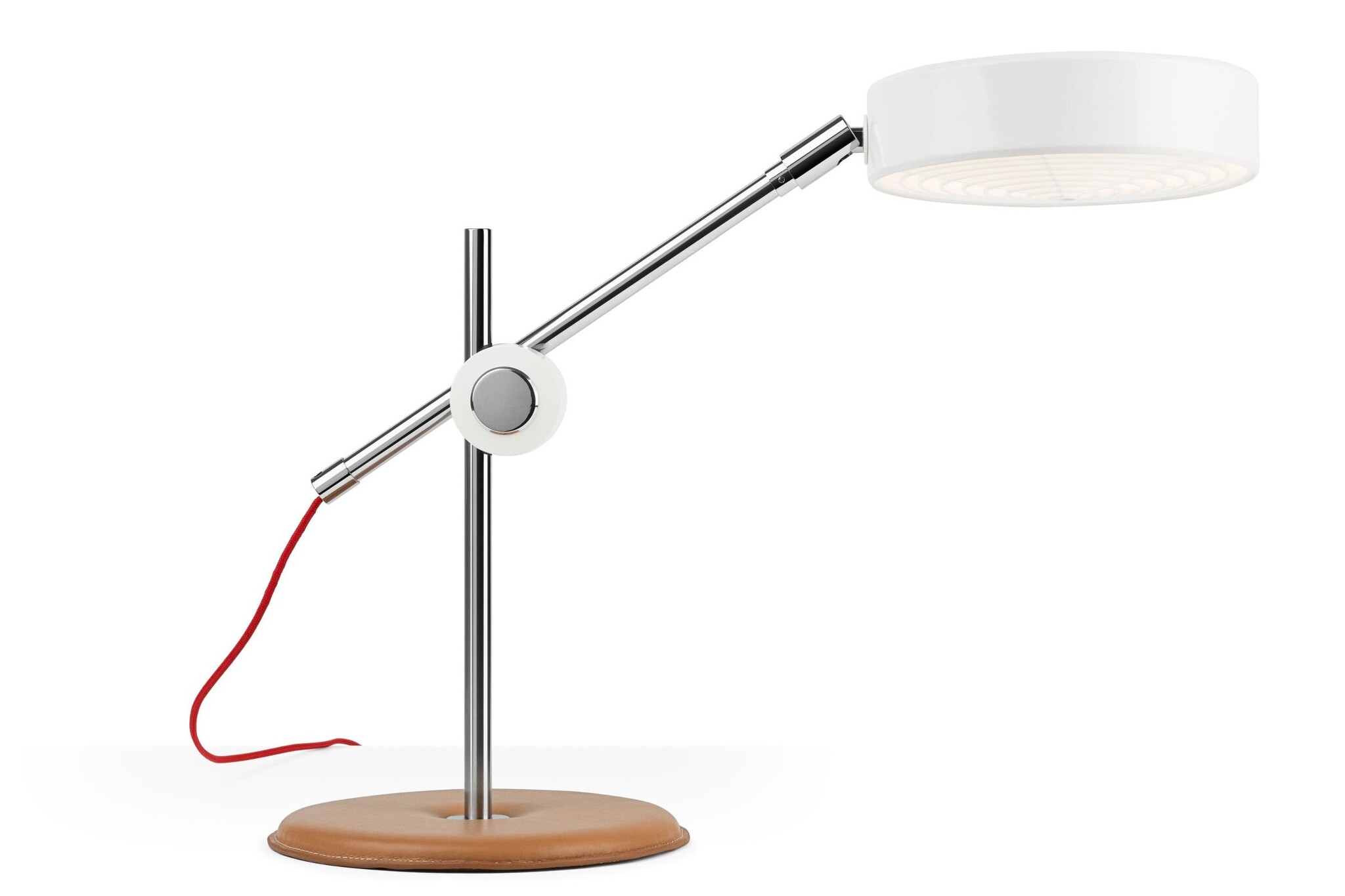 Kleuren: wit RAL9016 met lampenvoet in naturel gekleurd leder