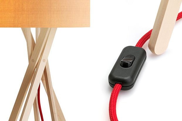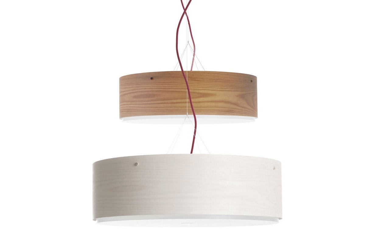 Belux Arba is een serie lampen die bestaat uit een plafondlamp, vloerlamp, tafellamp en wandlamp. De lampenkap is gemaakt van esdoorn houtfineer, heeft een kunststof diffusor en is voorzien van een rode textiele kabel. Arba plafondlamp