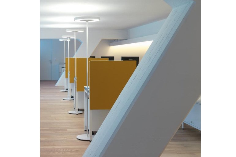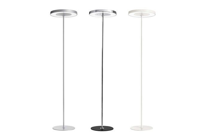 Belux Disk is een serie lampen bestaande uit een hanglamp, vloerlamp en een bureaulamp De Disk heeft een zachte verlichting en een brede lichtverdeling. De lamp is gemaakt van spuitgietaluminium staal en is te leveren in de kleur chroom, aluminium of wit.