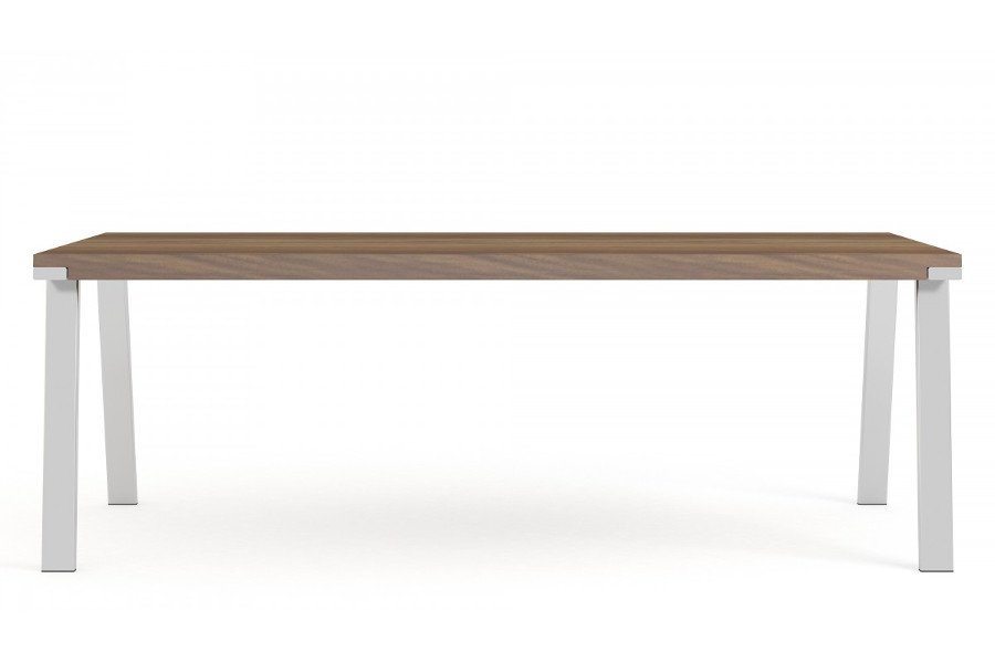 Bert Plantagie Seven tafel heeft een roestvrijstalen onderstel gecombineerd met een dik houten tafelblad. Het blad is gemaakt van beuken-, eiken-, essen-, kersen-, notenhout of HPL. Bij een HPL blad is de tafelrand in kleur gebeitst. De tafel heeft een afmeting van B 100 x H 77 x L 160 tot 260 cm. Materialen