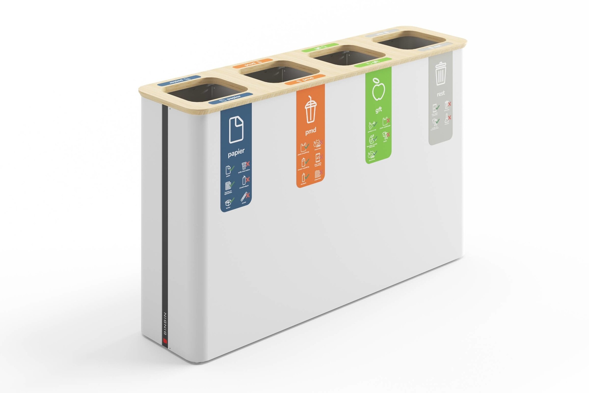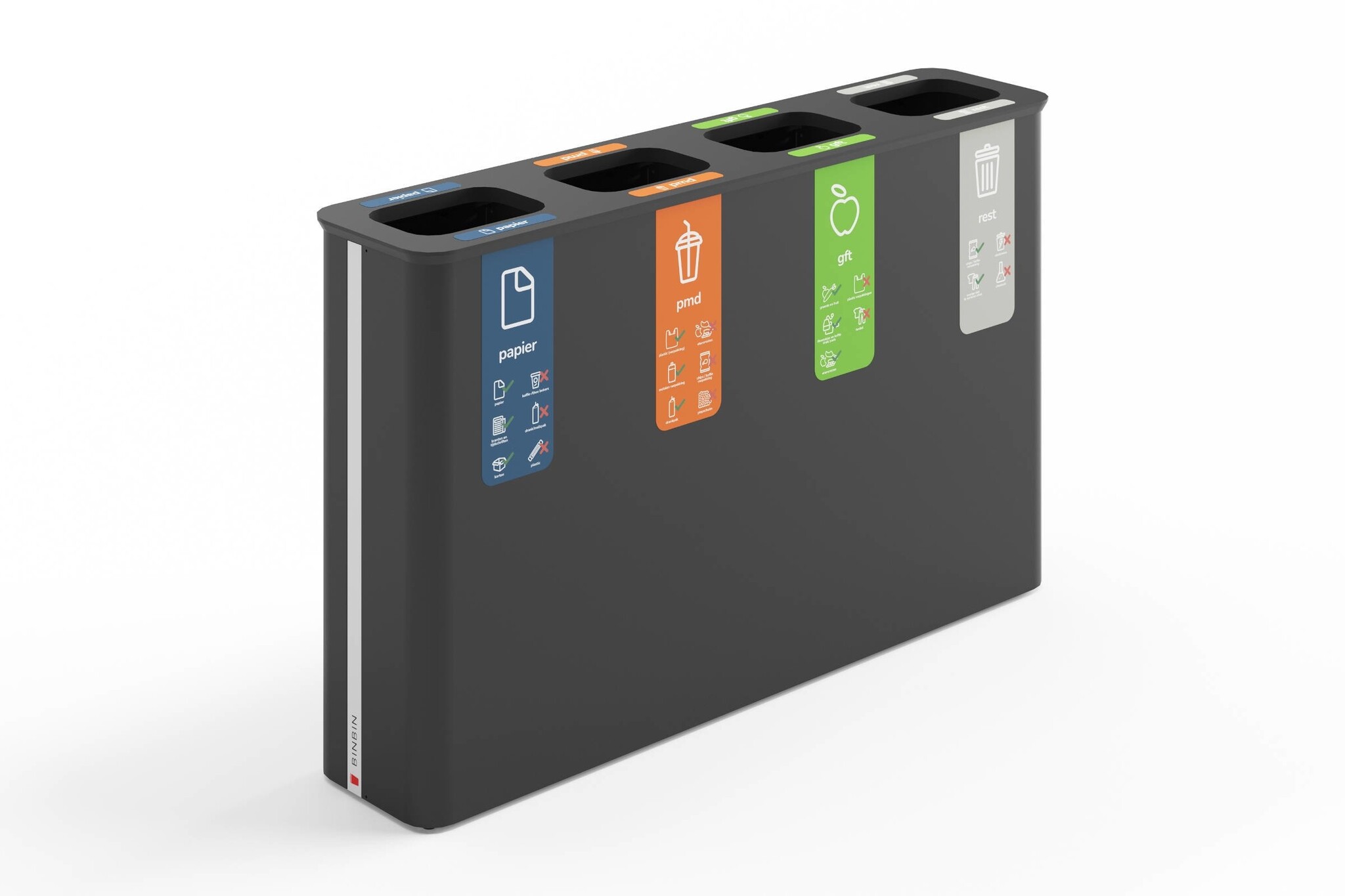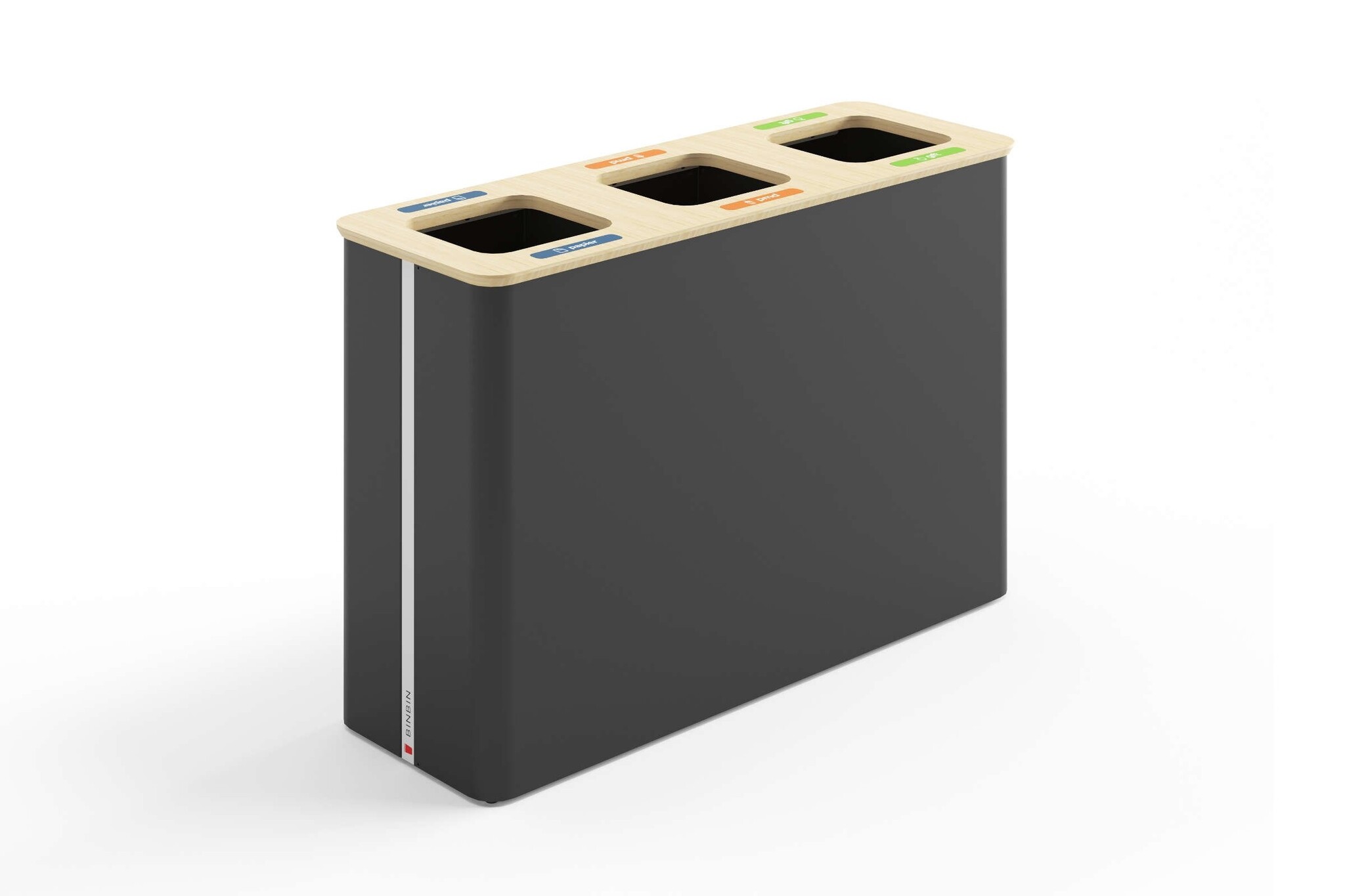 De BinBin Globular is een afvalbak die het mogelijk maakt om eenvoudig verschillende afvalstromen te scheiden. Denk aan papier, plastic, gft, glas of restafval. De bakken zijn leverbaar met compartimenten van 30, 45, 60 of 90 liter en in varianten van 1 tot 4 bakken. Deze afvalbakken van BinBin zijn goed toe te passen in openbare ruimtes, zoals de horeca, musea, vliegvelden, theaters of kantoren. Ook is het mogelijk om bijvoorbeeld uw logo of andere beeldmerken te plaatsen, zodat de BinBin Globular in uw huisstijl past. Kenmerken van de BinBin Globular