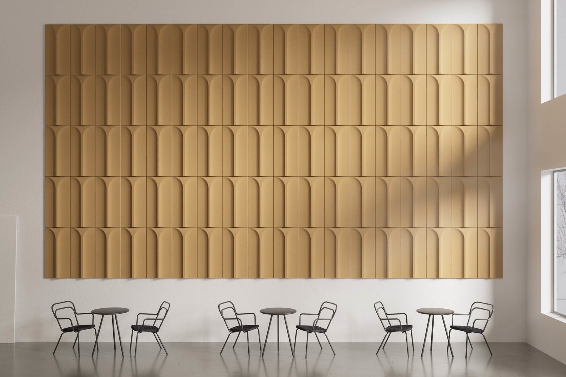 Het design van de akoestische panelen is gebaseerd op de arcades van het Colosseum in Rome.