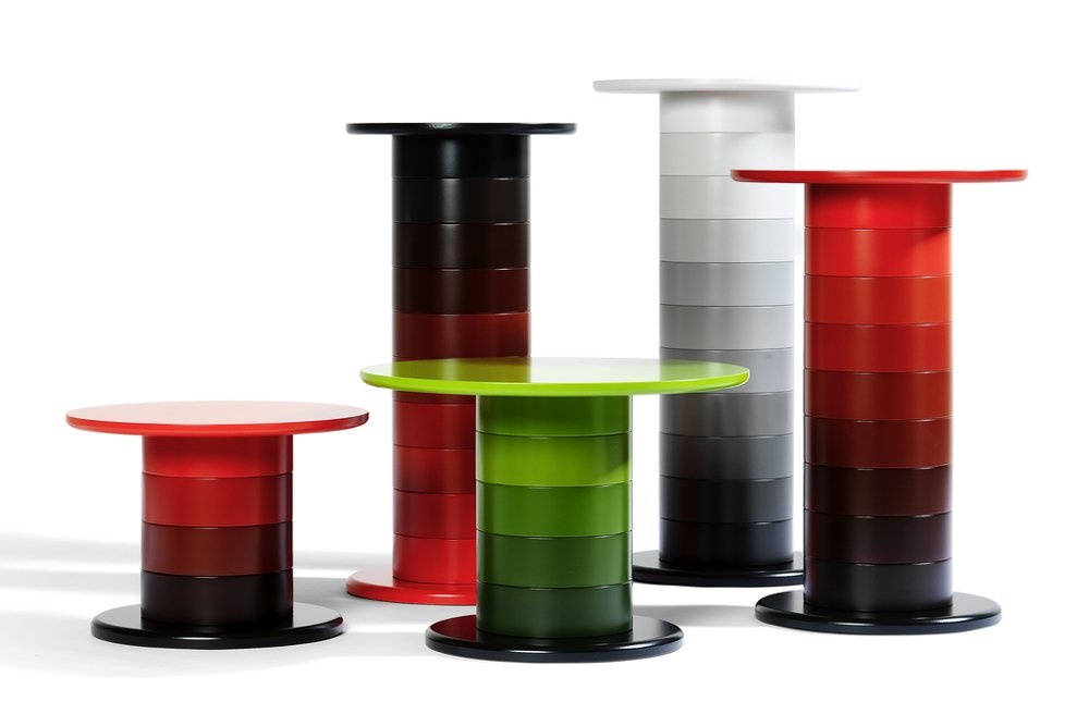 Een tafel leverbaar in diverse maatvoeringen en kleuren. Zo is de Babel toepasbaar als salontafel, kantinetafel of hoge sta-tafel. Deze tafel is voorzien van ringen gemaakt van berkenhout, gelakt in verschillende NSC kleuren. Elke ring is 95 mm hoog. Babel is dankzij de unieke design en vele kleuren geschikt voor alle soorten interieurs.