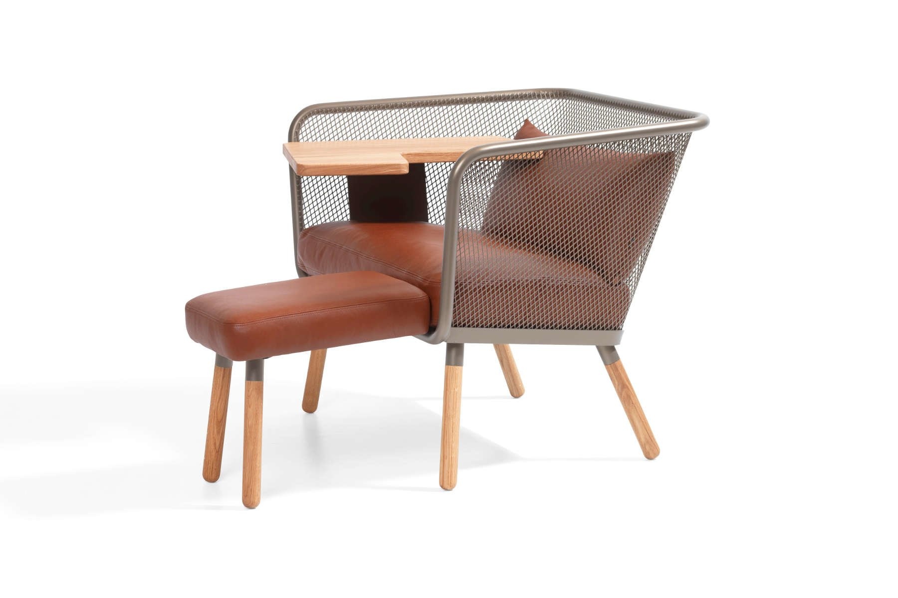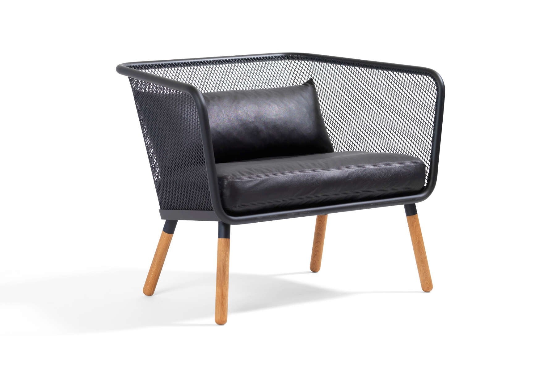 Honken is een riante fauteuil, die ook functioneert als een intieme tweezitsbank, gemaakt van duurzaam staal en strekmetaal maar met gedraaide poten van massief eiken. Kenmerken Blå Station Honken fauteuil