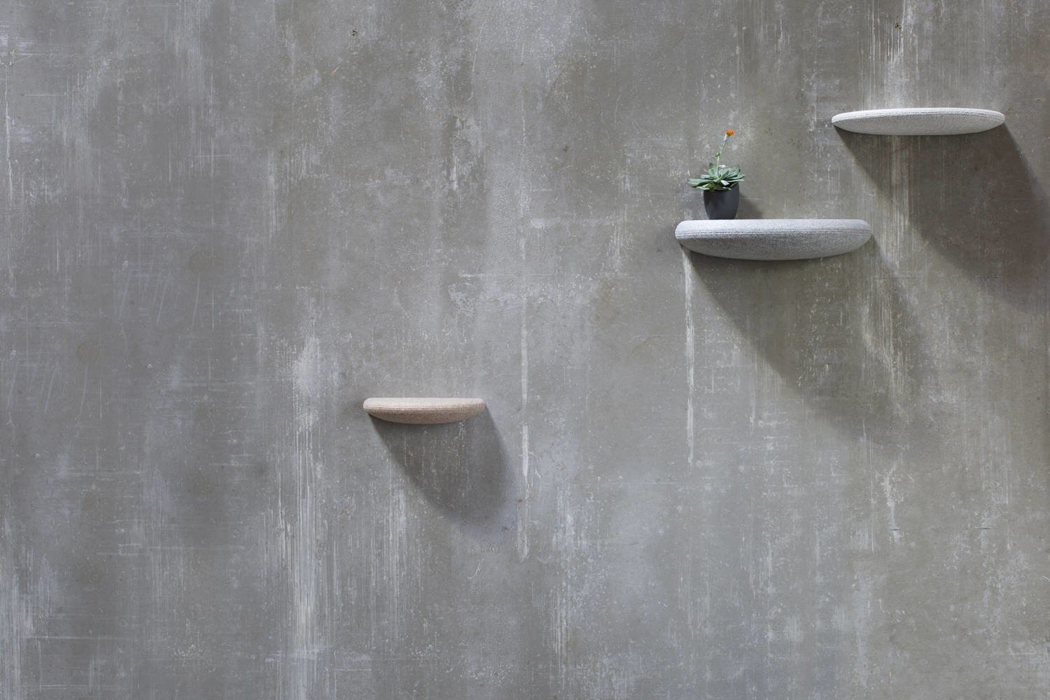 De Stones van Bogaerts Label is een ontwerp van designer Philip Bogaerts. De Stones maakt het mogelijk om op een mooie en visueel aantrekkelijke manier producten op een muur te presenteren en tentoon te stellen. Het verschaft de gelegenheid om van elke willekeurige muur een designobject te maken, een blikvanger in het interieur. Of dat nou in een museum, kantoor, restaurant winkel of welke andere openbare ruimte ook.De Bogaerts Label Stones bestaat uit een set van 3 op stenen gelijkende muurobjecten, elk van een ander formaat. De elementen zijn vervaardigd van solide hout en met stof bekleed. Standaard leverbaar in natuurlijke grijs/bruin tinten. Op aanvraag is het ook mogelijk om de Stones in elke gewenste kleur te maken. Bevestiging van de elementen, op elke muur, is eenvoudig en simpel met behulp van 2 schroeven.