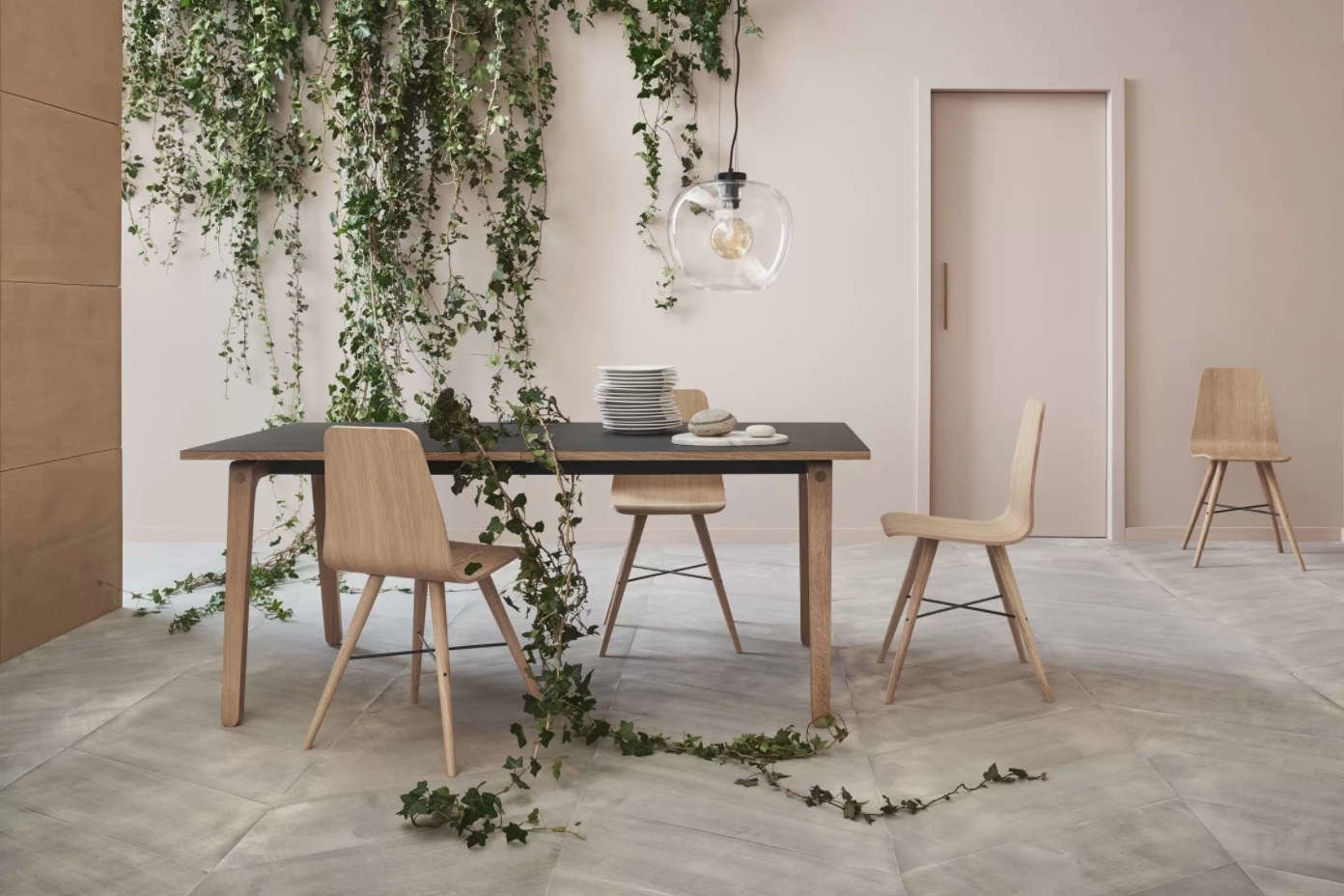 Onderstel in: zwartgebeitst geolied eiken, geolied eiken, geolied walnoot, donker geolied eiken of witgepigmenteerd geolied eiken
