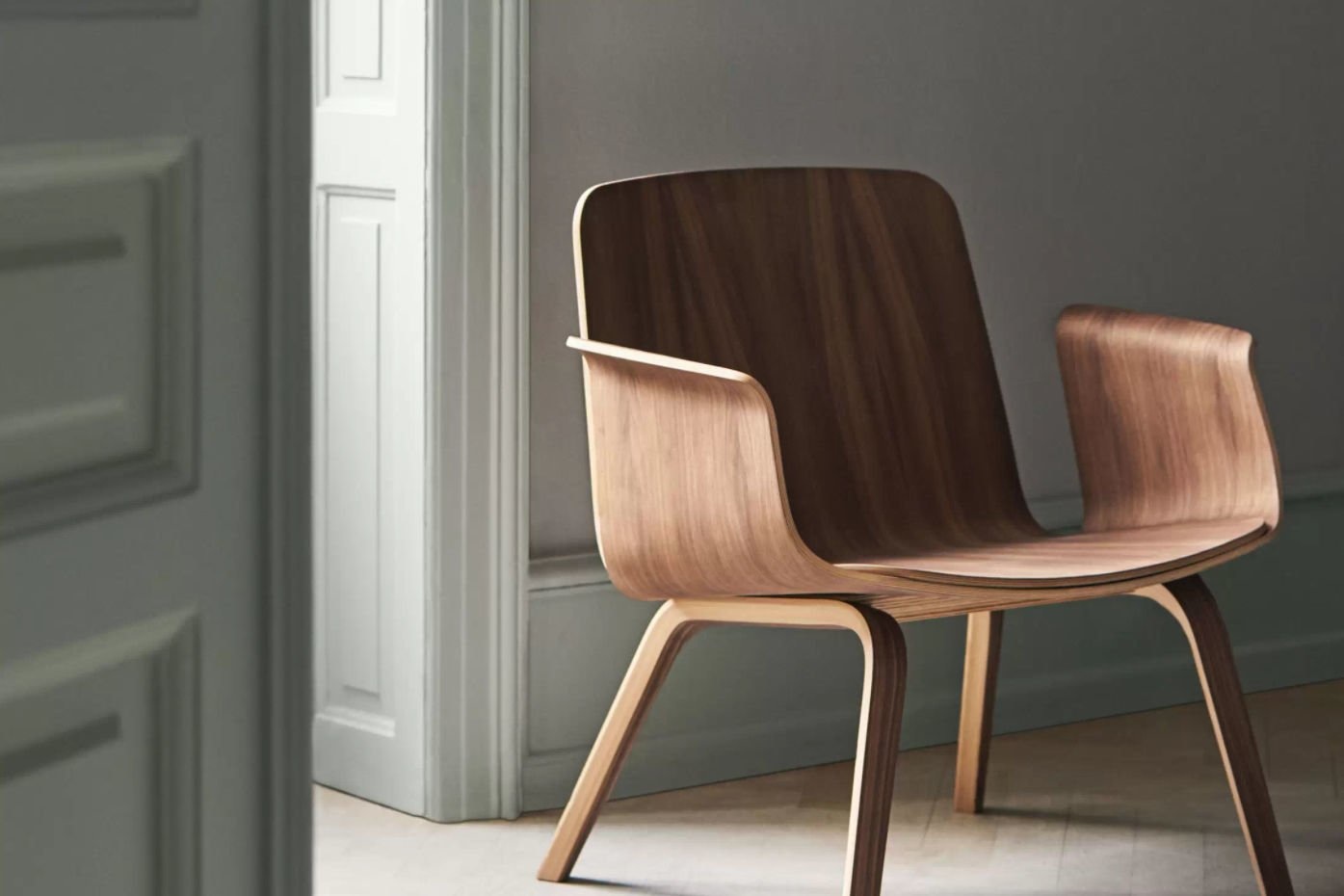 Palm fineer lounge stoel met armleuningen