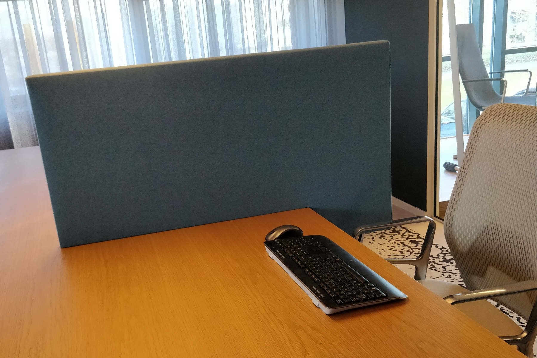 De scheidingswand heeft akoestische eigenschappen, hierdoor wordt geluid gedempt en kun je ongestoord werken.