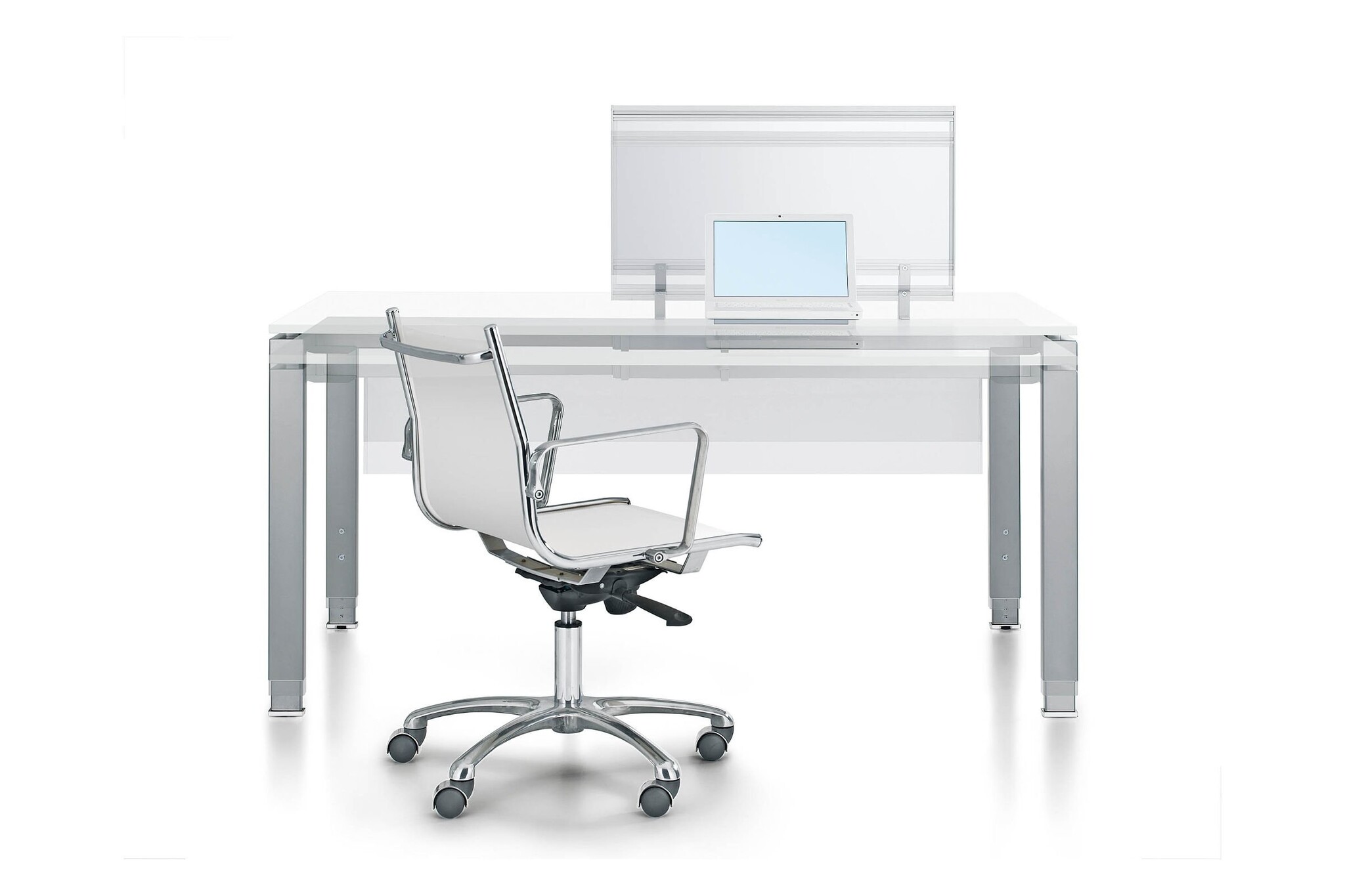 Bralco Glider is een elegant minimalisme; dankzij het ruime assortiment van elementen en afwerkingen kunnen zonder formaliteiten werkruimtes gecreëerd worden. De gebruikte materialen, waar onder hout, kristal en metaal, zijn van fundamenteel belang om de combinatie van solide kwaliteit met licht gewicht, van gedegenheid met efficiëntie tot uitdrukking te brengen. SchermenDe schermen zijn gemaakt uit spaanplaten met een dikte van 18 mm bekleed met decoratief papier geïmpregneerd met melamine-harsen (densiteit 620 kg/m3 klasse E1 met lage uitstoot van formaldehyde volgens de normen ISO, klasse van reactie op brand 2) met massief houten ABS afgeronde randstroken met een dikte 1 mm. Ook kunnen ze geverfd worden met polyurethaancoatings.
