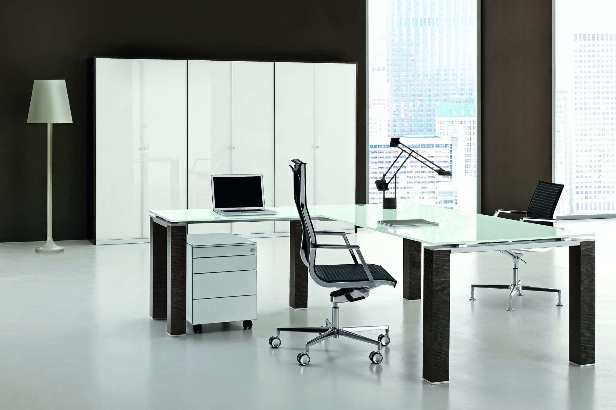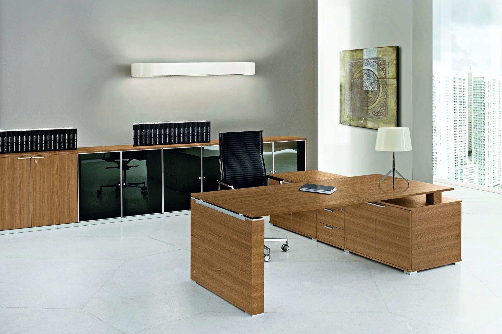 Bralco Jet - strenge vormen, zorg voor de details, aandacht voor design en prestigieuze afwerkingen maken van Bralco Jet een systeem dat toestaat directiemeubelruimtes samen te stellen, met werkvlakken, alleenstaande conversatietafels, verlengingen, ladekasten en opbergmeubels. Melamine bladen