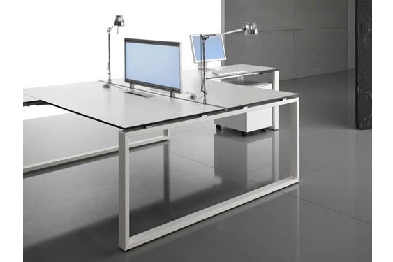 De schermen zijn gemaakt uit spaanplaten met een dikte van 18 mm bekleed met decoratief papier geïmpregneerd met melamineharsen met massief houten ABS afgeronde randstroken met een dikte 1 mm ofwel kunnen ze geverfd worden met polyurethaancoatings. Als alternatief is de versie in microdoorboord weefsel beschikbaar, ondersteund door ruwe spaanplaten met een dikte van 18 mm. In de versie in melamine, geverfd en in weefsel, kunnen ze uitgerust worden met profielen in geanodiseerd aluminium met een doorsnede van 20 mm x diepte van 8 mm met de functie van toebehorendrager. De densiteit van het melamine is 620 kg/m3, klasse E1 met lage uitstoot van formaldehyde volgens de normen ISO. Reactie van klasse 2 bij brand. Schermen met aluminium frameDeze schermen bevatten een paneel in methacrylaat met een dikte van 4 mm in verschillende kleuren ofwel een paneel in microdoorboord weefsel ondersteund door ruwe spaanplaten met een dikte van 18 mm. De panelen zijn gesloten door aluminium profielen met een doorsnede van 36 x 21 mm in het horizontaal gedeelte, met een profiel met een doorsnede van 22 x 4 in het verticaal gedeelte en zijn verbonden middels schroeven. Ze worden ondersteund door speciaal daartoe bestemde metalen beugels op het aluminium bench profiel geplaatst op het centrum van de dubbele post van 124 of 164 cm ofwel middels beugels die aan de balken of de poten kunnen bevestigd worden in het geval van afzonderlijke schrijftafels. Beschikbaar in verschillende lengtes.
