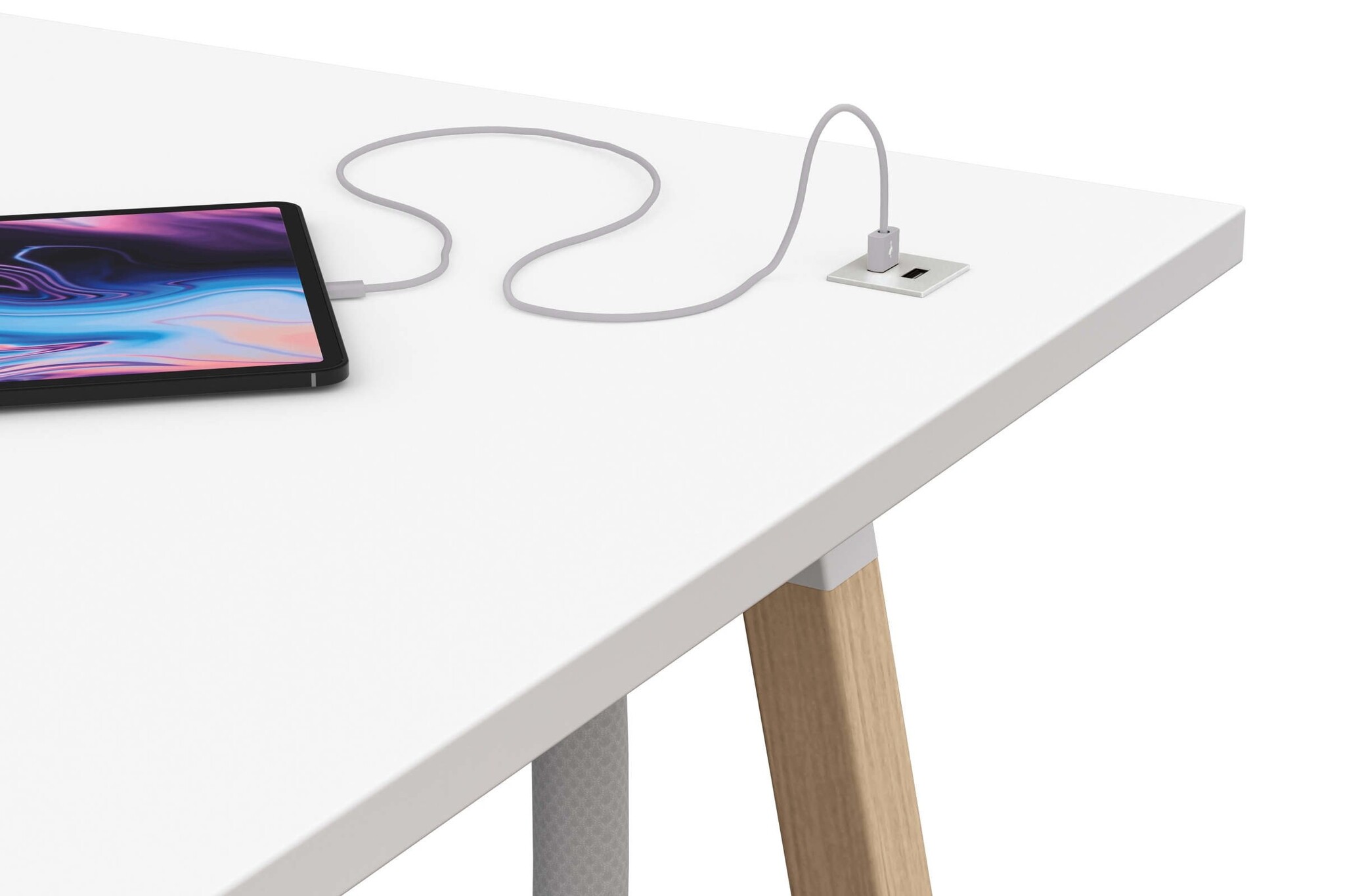 Optioneel kan er elektrificatie toegevoegd worden, zodat de medewerkers hun laptop of telefoon kunnen opladen en daardoor gedurende de dag kunnen studeren of werken.