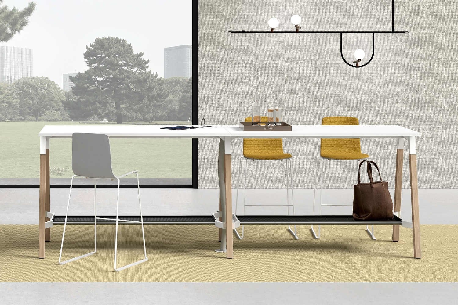 De Polare Meeting kan zowel een hoge als lage tafel betreffen. Voor een wat informelere ruimte is de tafel met de hoogte van 105cm bijvoorbeeld erg geschikt.