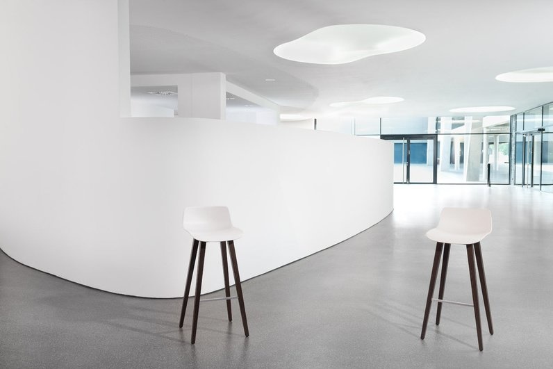 Het vierpootonderstel van massief eiken heeft een stijlvolle uitstraling en vormt een fraai contrast met de stoere kunststofkuip. Deze variant is de perfecte aanvulling op Fina Wood en vele andere series met een houten onderstel. Bovendien is deze barkruk ook te leveren met een sledeonderstel.