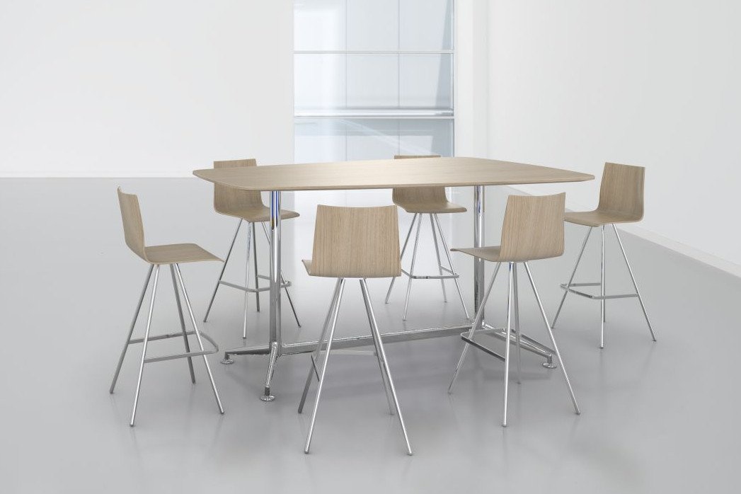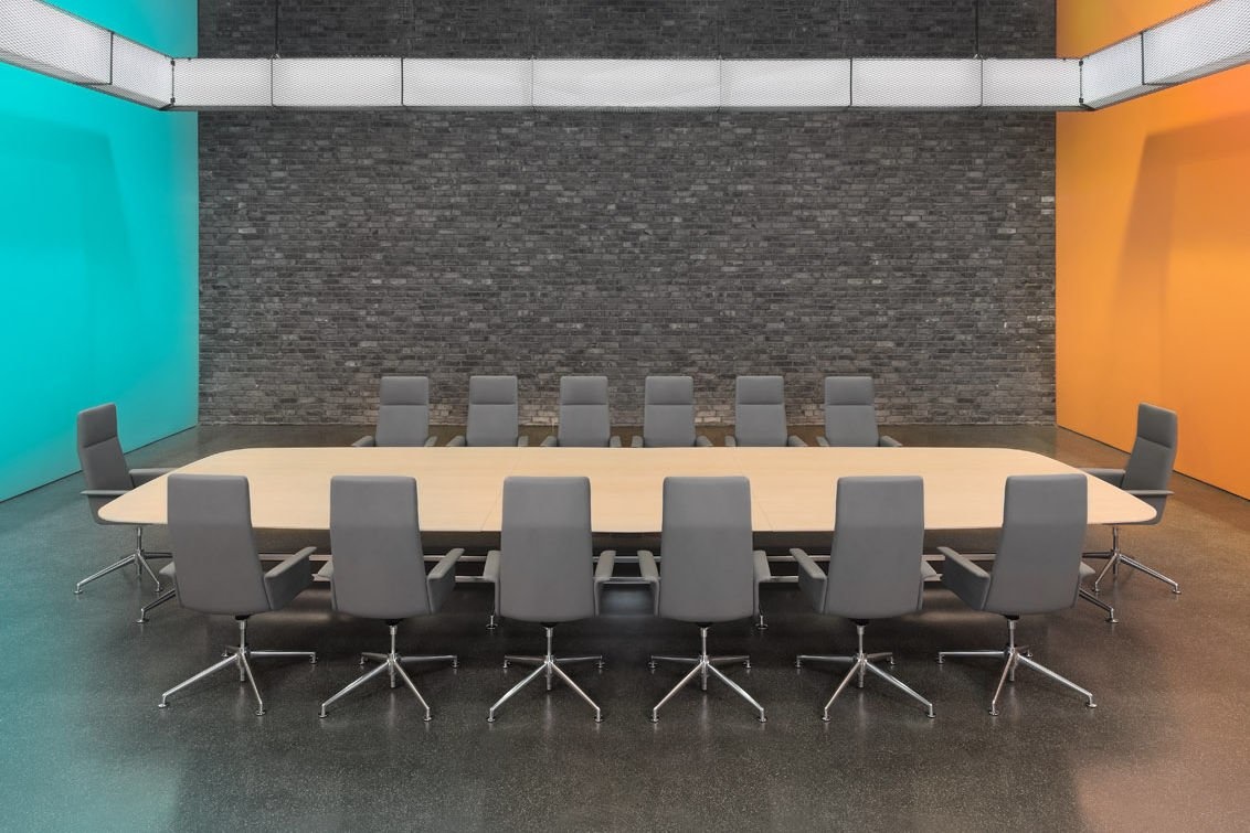 Een belangrijk kenmerk van de Brunner Fina Conference tafels: de modulaire opbouw van het onderstel, waardoor de vele varianten mogelijk worden gemaakt. Ook de tafelbladen zijn in veel verschillende modellen verkrijgbaar, van rond naar ellipsvormig tot rechthoekig. Voor de toplaag kan er worden gekozen uit robuust HPL of eiken- of Amerikaans notenfineer. Het tafelblad krijgt door de nieuwe schuine CRK-rand een extra ranke uitstraling.