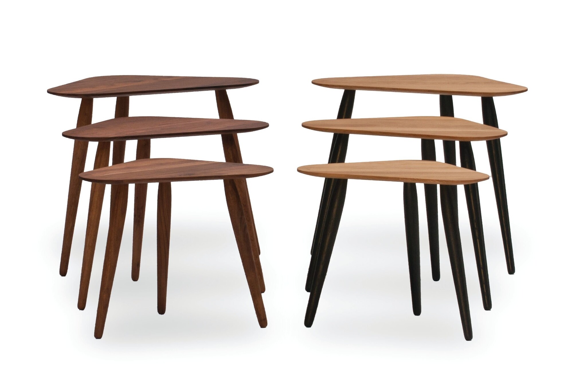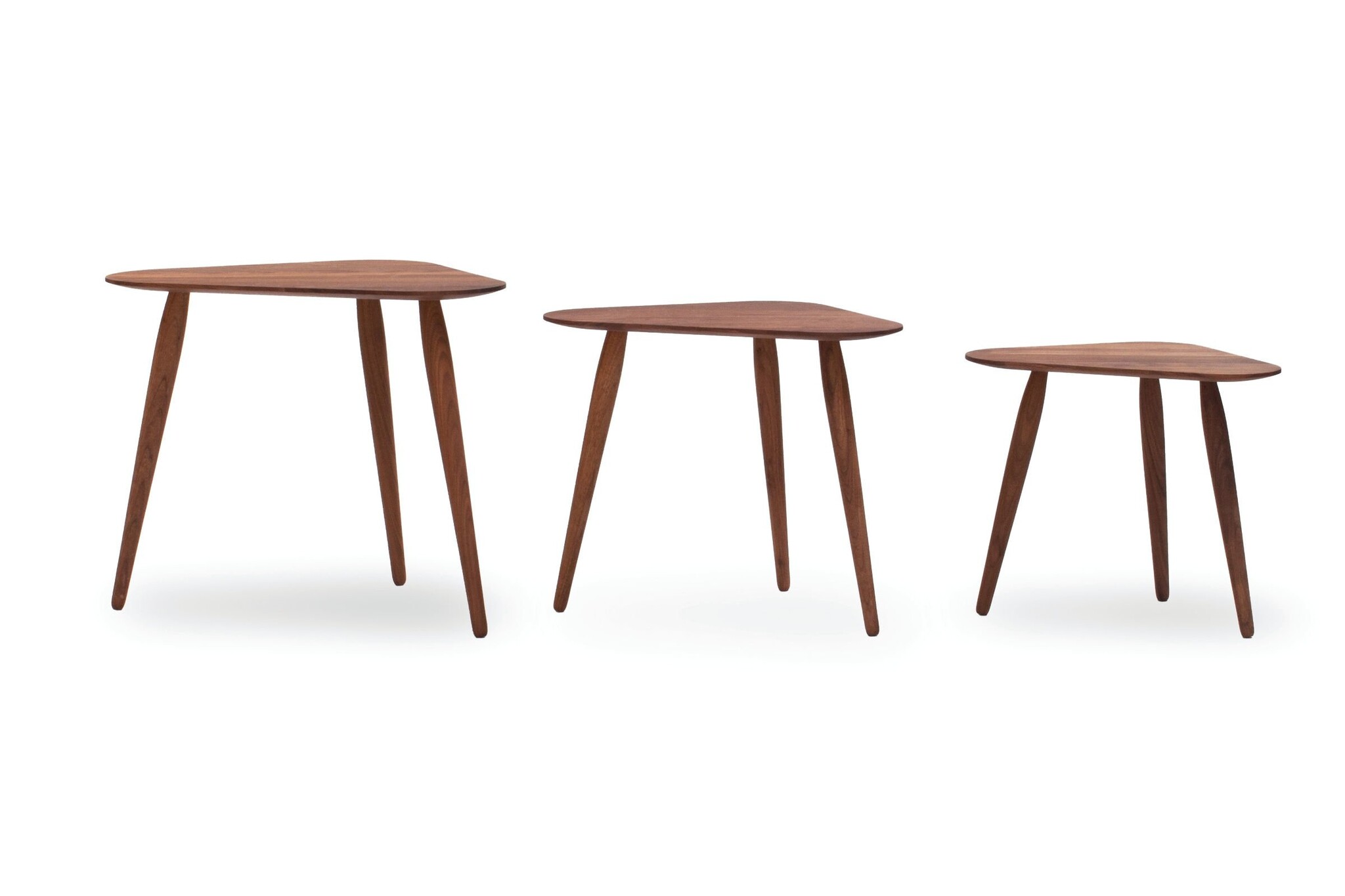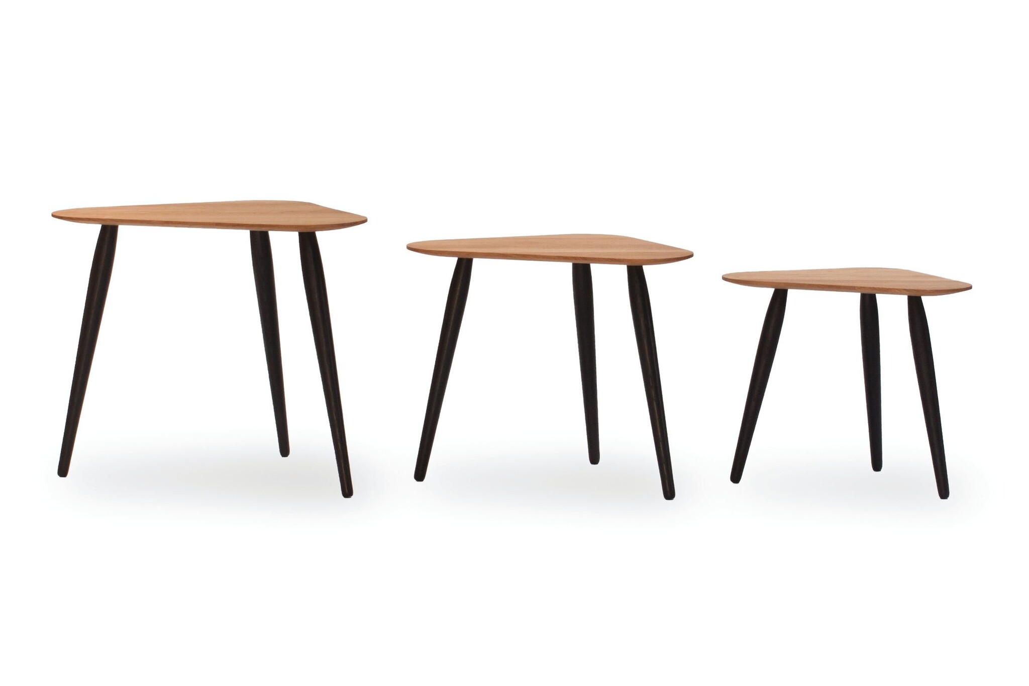 De PLAYorganic van Bruunmunch is een massief houten tafel en zijn verkrijgbaar in de volgende versies: Europees eikenhout in verschillende olie afwerkingen Amerikaans walnotenhout met een warme, donkere bruine kleur en Zwart gelakt gebeitst eiken. Hier is het nog steeds mogelijk om de houtstructuur te zien door het zwarte oppervlak. Al deze salontafels worden ook geproduceerd in laminaat. Ze hebben vijf aardse kleuren geselecteerd die goed gaan met de hedendaagse trends, Crystal white, Ocean Grey, Dusty Jade, Grotto en Storm Grey. Het kernmateriaal is MDF met gelijmde stroken van hout dat overeenkomt met houten poten van de tafel.
