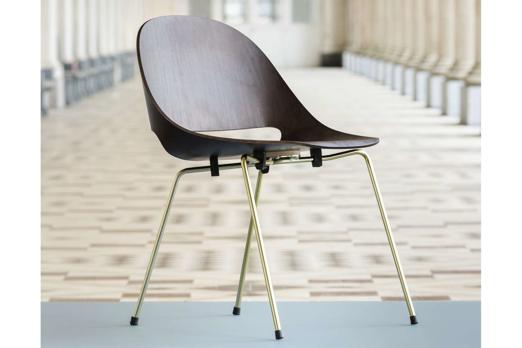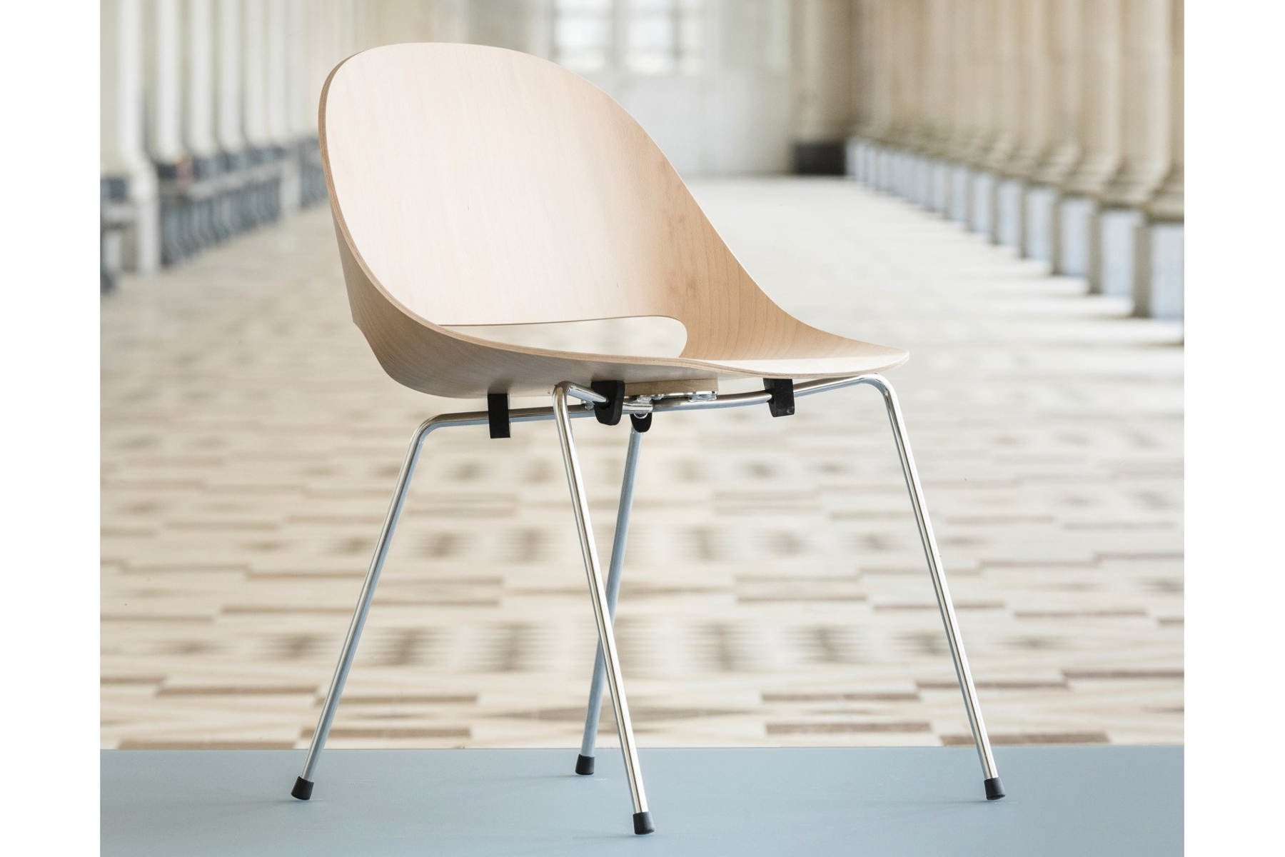 De vierpoot stoel is stapelbaar.