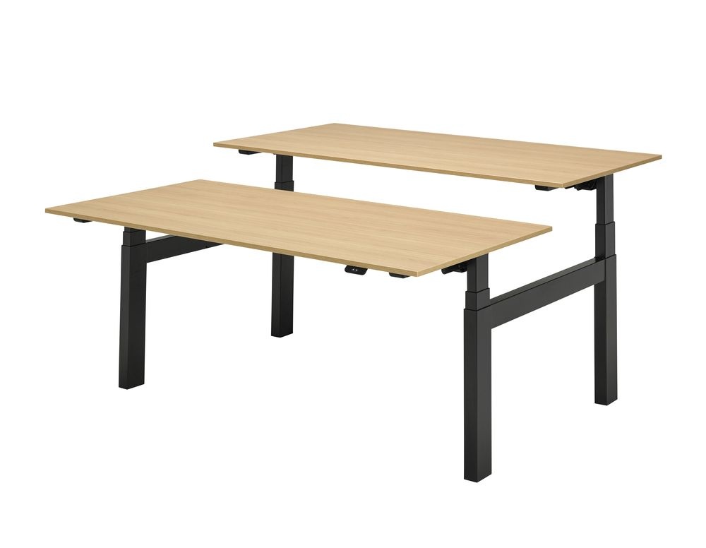 De Presto R Duo is perfect voor het inrichten van duo-werkplekken. De duo-werkplekken zijn optioneel te voorzien van akoestische gestoffeerde tussenwanden met een hoogte van 120 cm vanaf de grond gemeten. Je kunt bij dit bureau kiezen voor een vaste aortagoot tussen het H-frame en kabelgoten die onder de bureaubladen bevestigd kunnen worden. Daarmee zijn vrij hangende snoeren verleden tijd. Presto R duo kent 2 verstellingen, met een slinger of elektrisch zit/sta. Daarbij kun je kiezen voor de bedieningsoptie met display en geheugen.