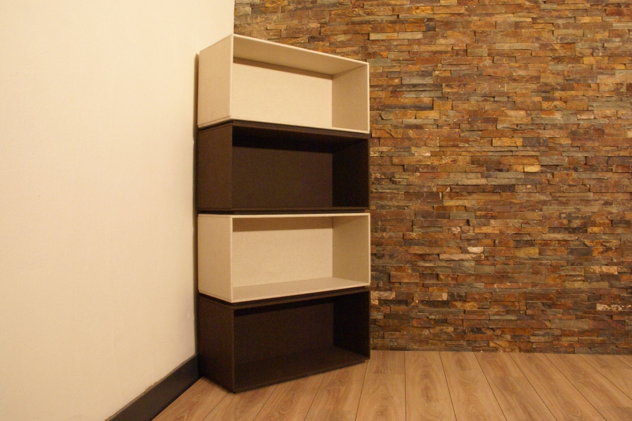 Verkrijgbaar in verschillende maten, die je op elkaar kan stapelen tot een hoge kast.