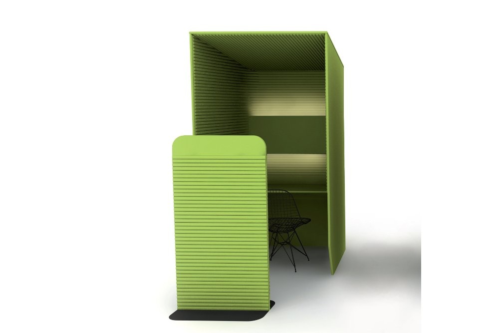 Deze akoestische telefoonstation is ontworpen met zachte randen en ronde vormen. Hiermee wordt geluid geleid en zorgt het ervoor dat de geluid zich beter verspreiden. Daarnaast zorgen de panelen die aan zijkant en boven geplaats zijn ervoor dat geluid de cabine niet kan verlaten. De telefooncel is voorzien van akoestische schuim, bekleed met stof welke tevens ook geluidsgolven opneemt.