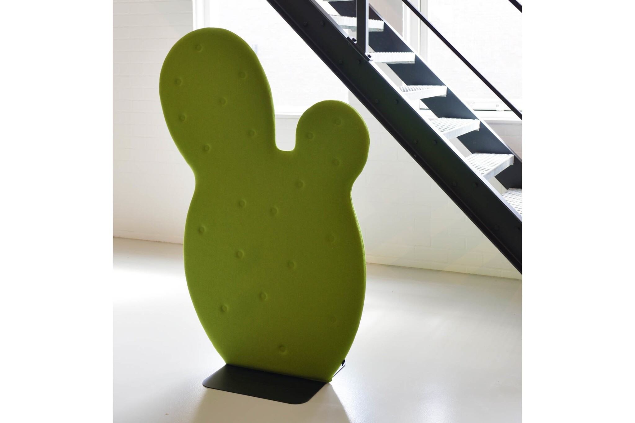 BuzziSpace BuzziCactus is een grappige roomdivider in de vorm van een cactus. Heeft u privacy, rust of bescherming nodig? De BuzziCactus is een scheidingswand die niet minder dan drie factoren combineert: geluidsisolatie, design en een ondergrond die als prikbord kan fungeren. Dankzij de opvallende vorm en kleur van de plant maak je een statement. Zet uw BuzziCactus in het licht, hij verdient het om gezien te worden! Eigenschappen BuzziSpace BuzziCactusVulling: honingraatkarton