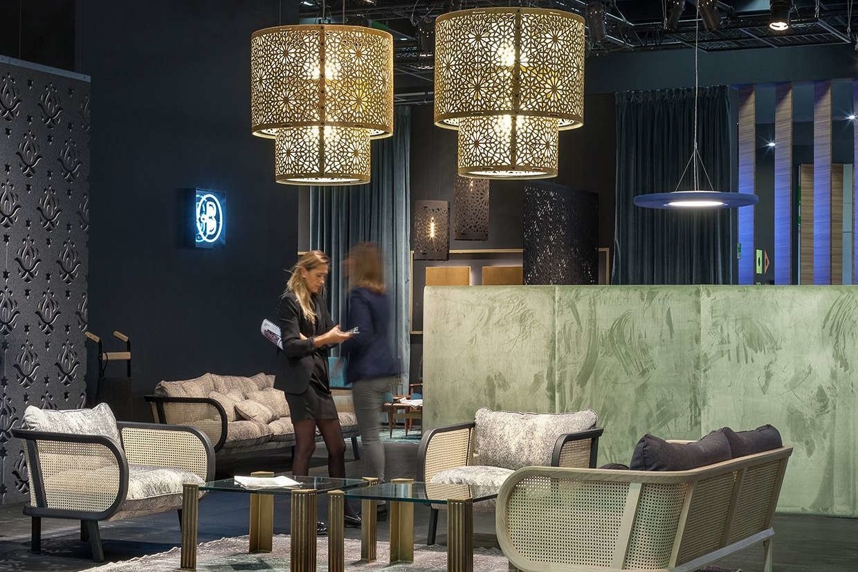 Op de NeoCon (grote beurs) presenteerde BuzziSpace zijn printmogelijkheden op BuzziFelt, met de introductie van twee nieuwe afwerkingsopties met een marmeren look: Carrara en Emperador. De BuzziChandelier is nu ook verkrijgbaar met een effen of geperforeerde kap (om de Moorse look te creëren).
