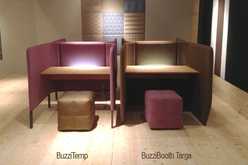 Het BuzziTemp werkstation zorgt voor maximale absorptie, diffusie en demping van geluid.