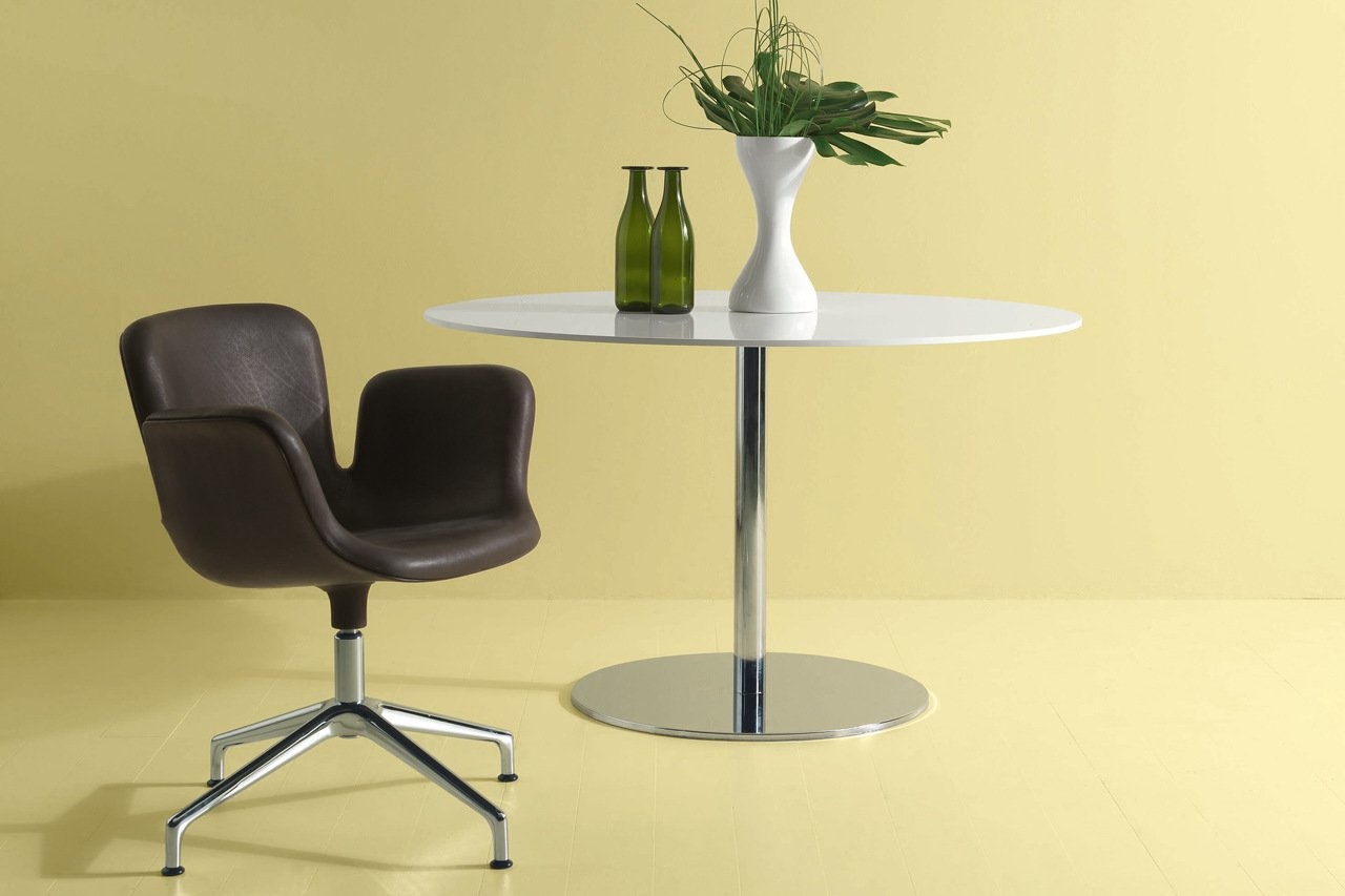 Draaifauteuil met verstelbare hoogte in gegoten integraal polyurethaanschuim (gips wit, donker grijs, zand, Marlboro rood kleuren) of bekleed met stof, leder, extra en super leder. Basis in polish verchroomd gietaluminium. Over Cappellini Cappellini design meubilair komt van een Italiaanse fabrikant en heeft een eigentijds design. Het design meubilair van Cappellini varieert van kantoormeubelen tot zitmeubelen en van fauteuils tot accessoires. De design meubelen van Cappellini zijn nooit saai of absurd, maar levendig en vol creativiteit.