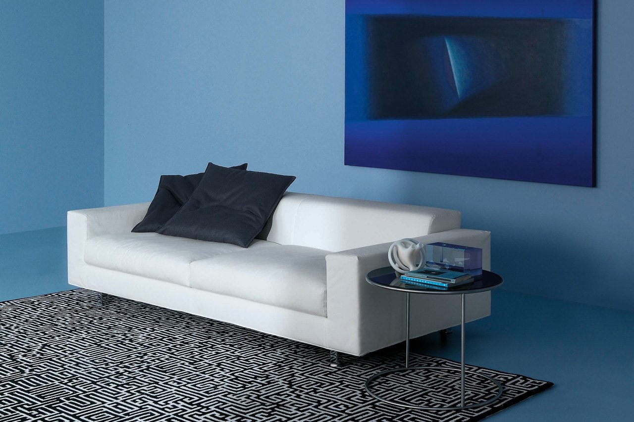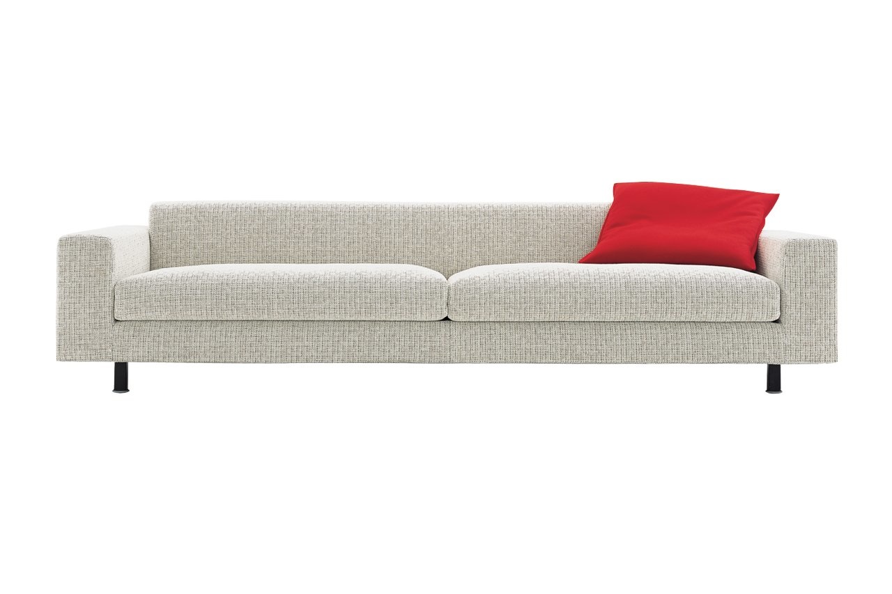 Cappellini Quack, een serie twee- en driezitsbanken met ronde basis van gepolijst chroom metaal. De voeten van de bankstellen zijn zwart en vierkant. De Cappellini Quack bankstellen zijn verkrijgbaar in stof en leder uit de collectie. De stoffen en leder uit de collectie zijn gemakkelijk schoon te maken.