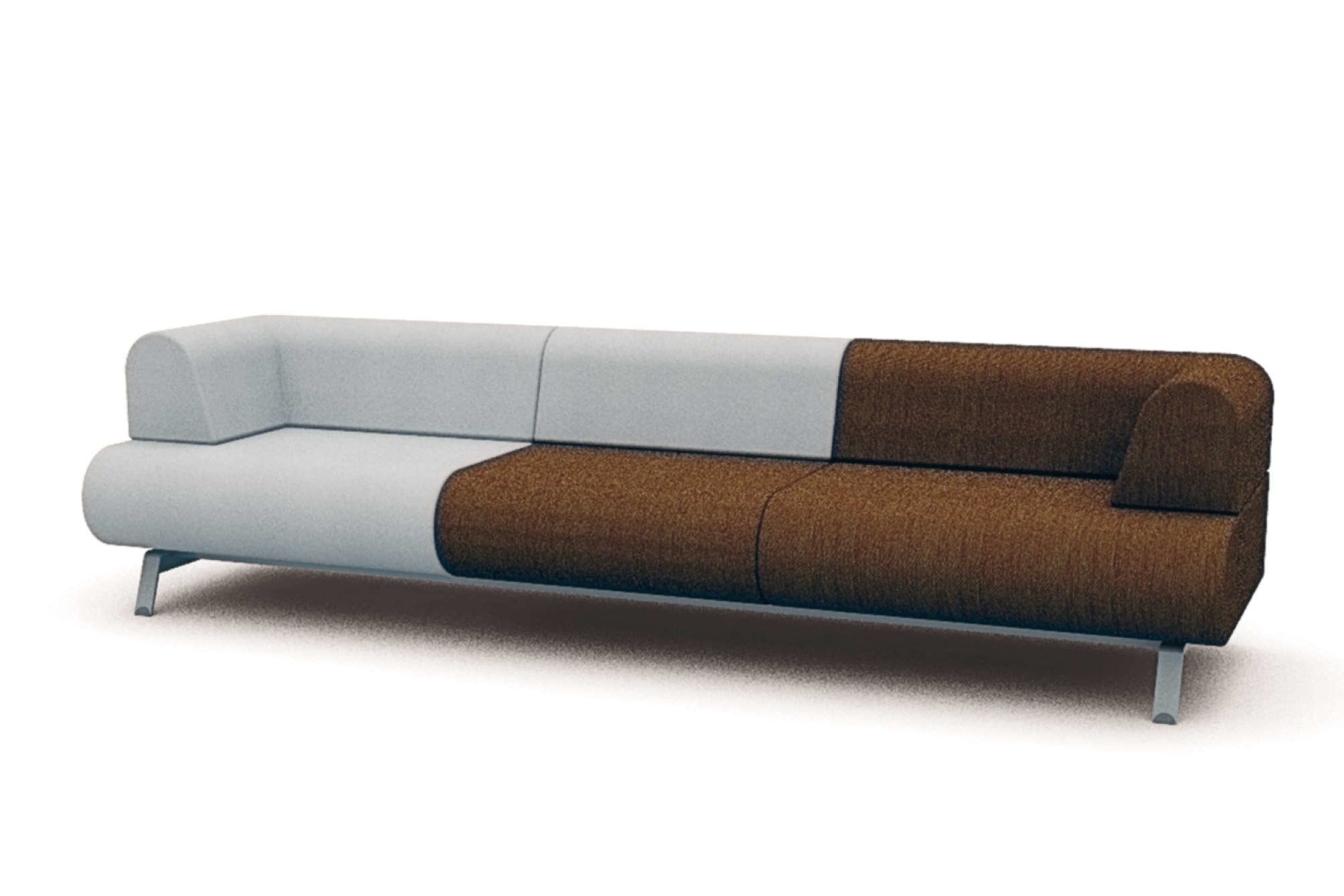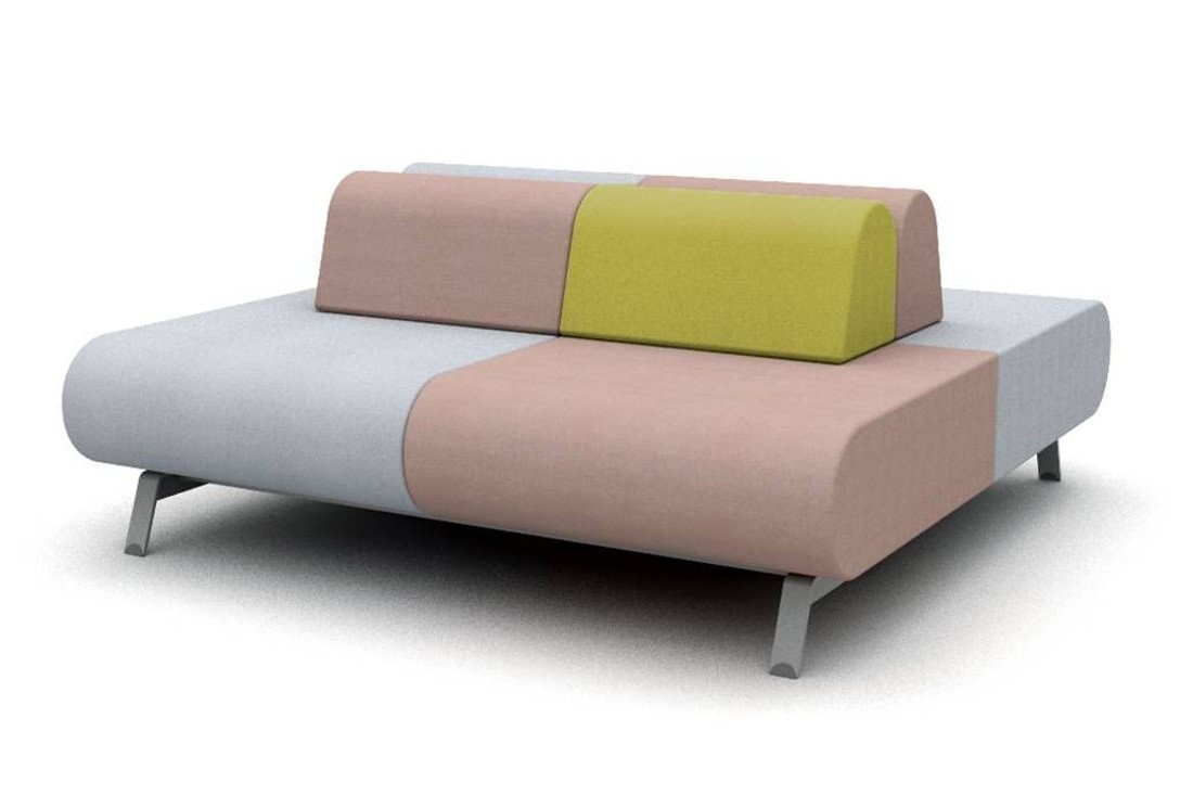 Rug en zitting: rug en zitting volledig gestoffeerd, stof of kunstleer, zitelement 800 mm breed, rugelementen 600 of 800 mm breed, hoekelement 1000mm breed links of rechts