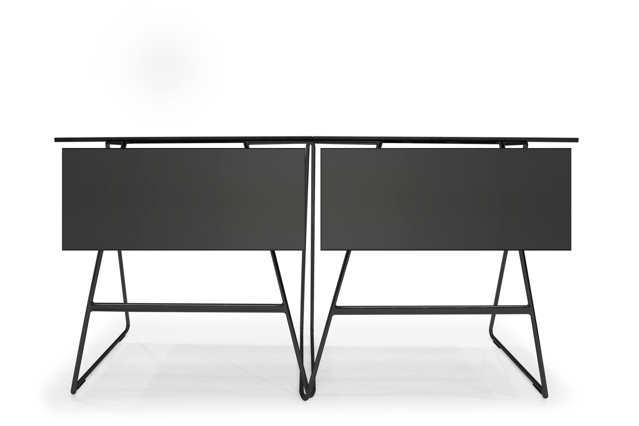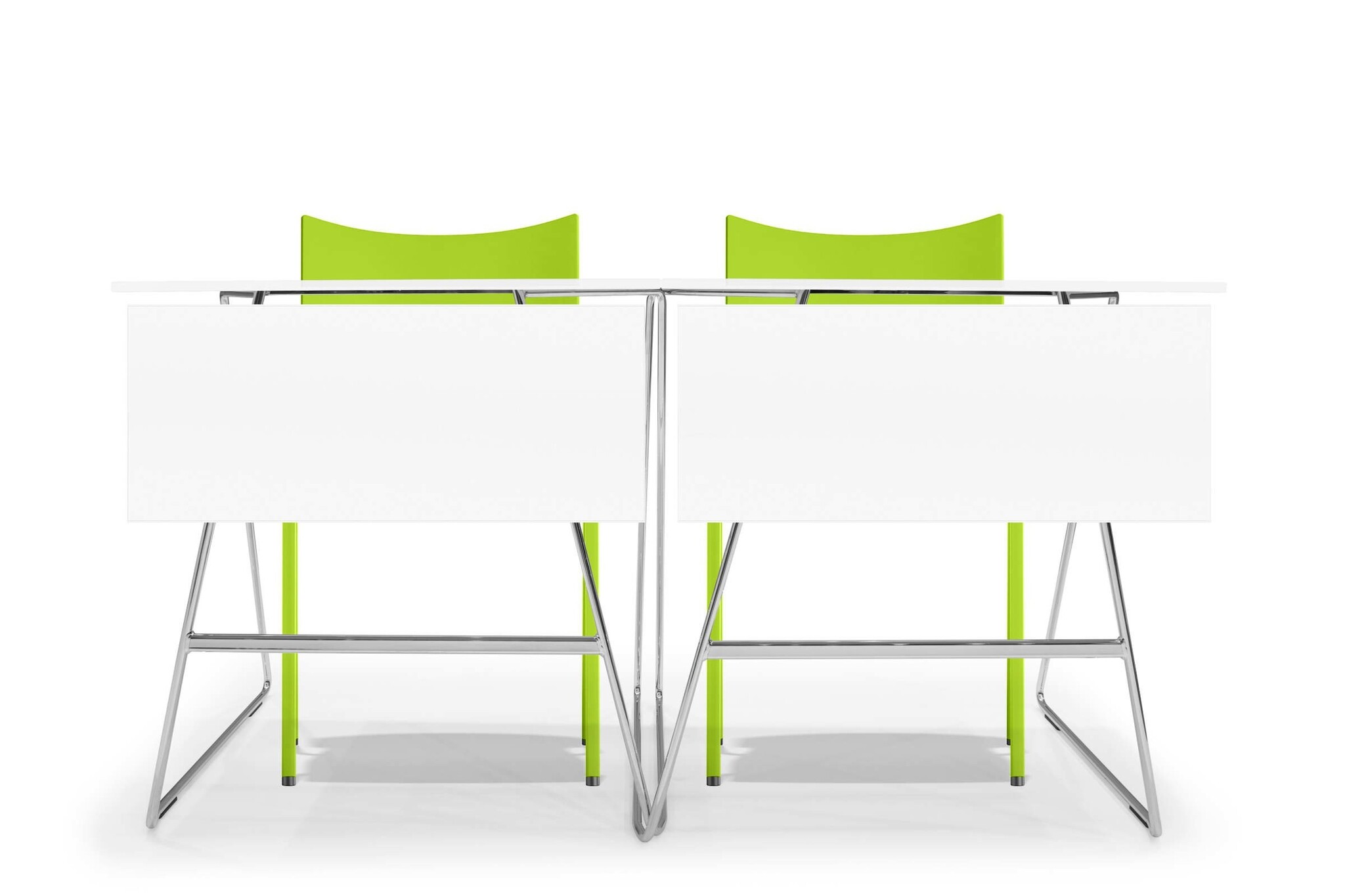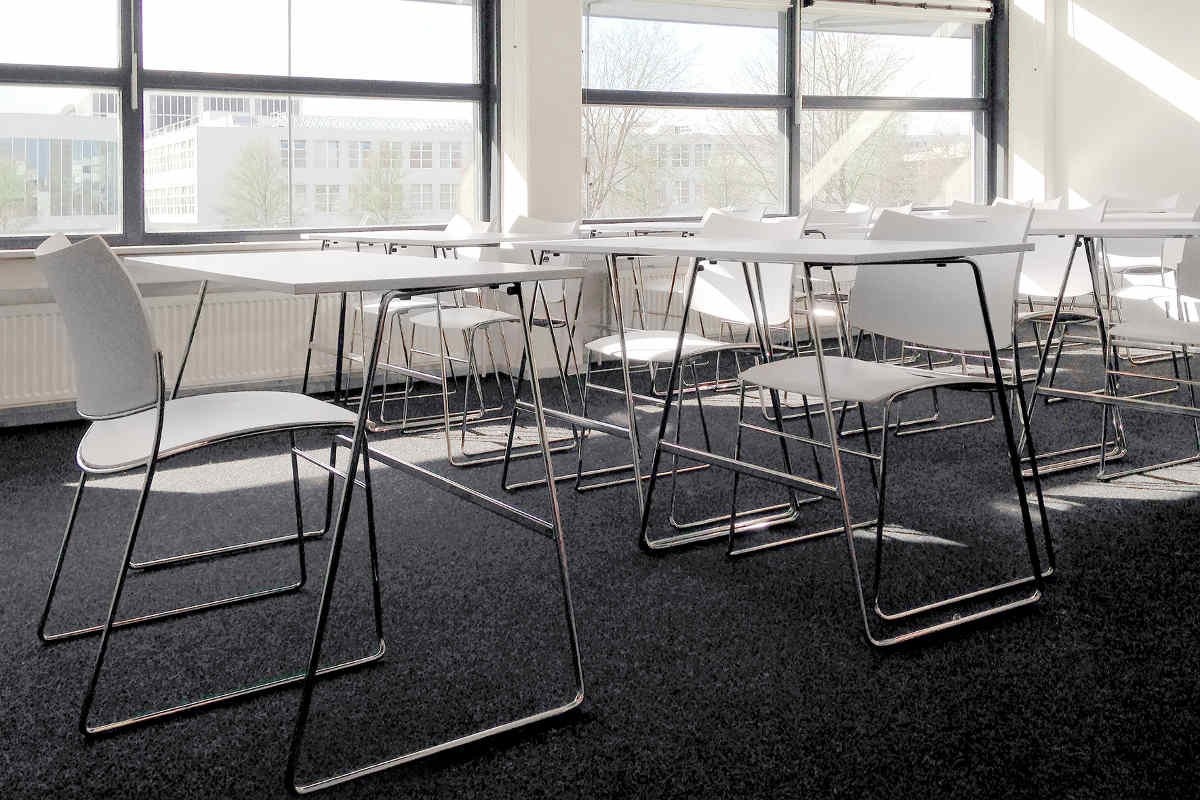 De tafels zijn aan elkaar te koppelen met een koppeling die standaard geïntegreerd is in het frame van de tafel.
