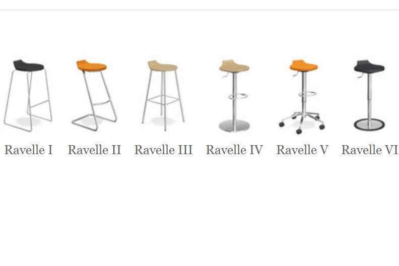 Casala Ravelle is een veelzijdige serie barkrukken. De Ravelle kruk kan op veel manieren ingezet worden; een barkruk programma voor in de kantine, kruk voor de mobiele werkplek, wachtruimtes en op plekken waar een korte vergadering plaatsvindt. De Ravelle is leverbaar met zeven verschillende onderstellen en zittingen in hout, Pu Schuim en gestoffeerd breed inzetbaar. Elke denkbare combinatie van zitting en onderstel is mogelijk. Zo is er een stervoet op wielen, slede, kolomvoet, slede en vierpoot variant van de barkruk.